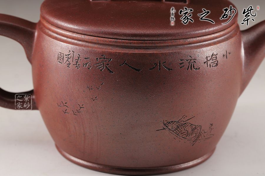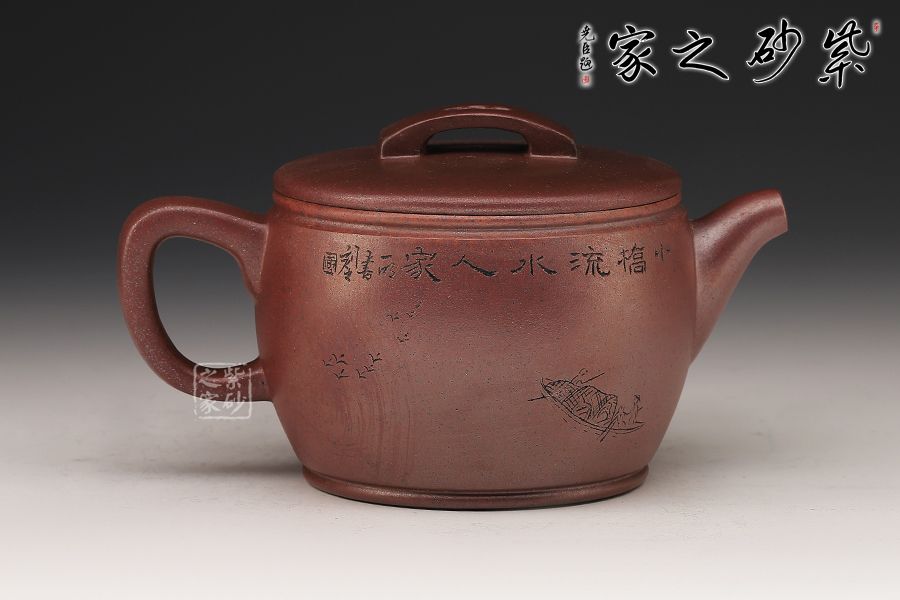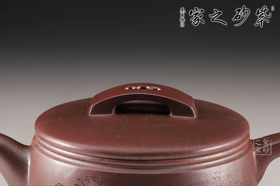 漢瓦屬于圓器中的經(jīng)典傳統(tǒng)器型,歷來多位藝人都有仿制此種款型,而此款漢瓦壺卻給人留下深刻印象,此壺圓筒形壺體,上寬下窄,短流同壺身明接;蓋平略見弧,橋式鈕,鈕面陰刻梅花紋樣;壺蓋子口制作圓滑,與壺口緊密結(jié)合,氣密性好,此壺工藝講究,雋永耐看!