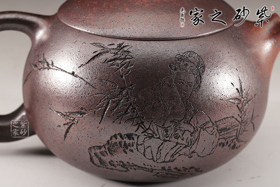 西施壺顧明思義,也是和西施一樣的美麗動人,亦如西施壺一樣嬌小可人,當然西施壺也就成了從多壺友所忠愛的器形之一,其憨厚,小巧,精致,清新的造型總是容易打動每一個人的心。中國美女代表式的櫻桃小口做流嘴,微啟欲說,即形象又實用;而壺鈕以一粒珠飾之,典雅的裝扮出倒把壺,顯得更加的成熟與雅致,更是惹人喜愛。