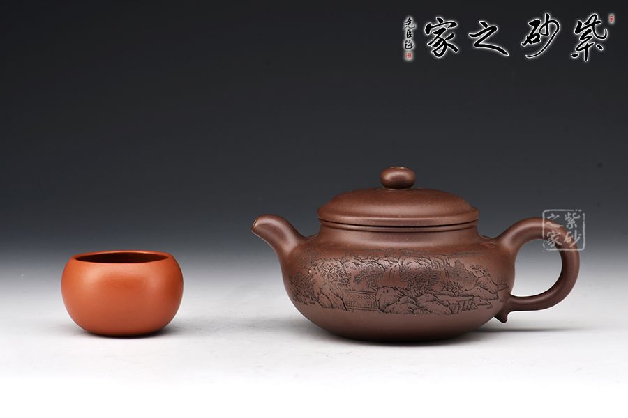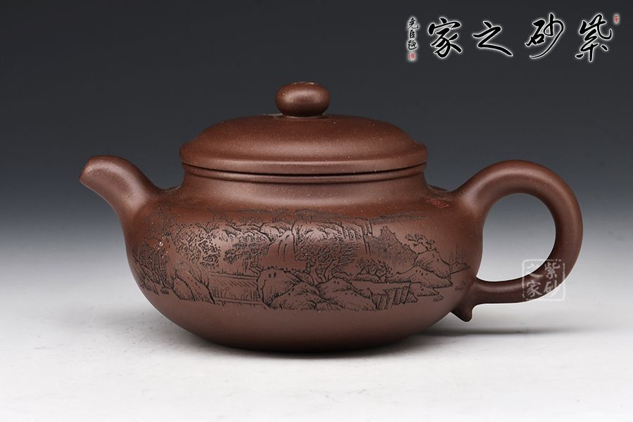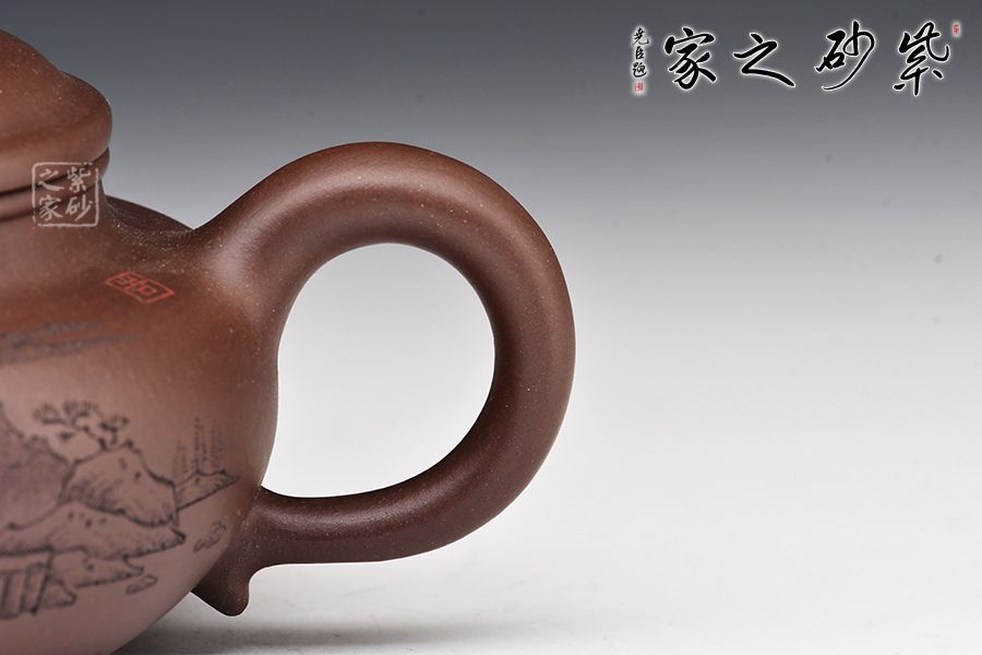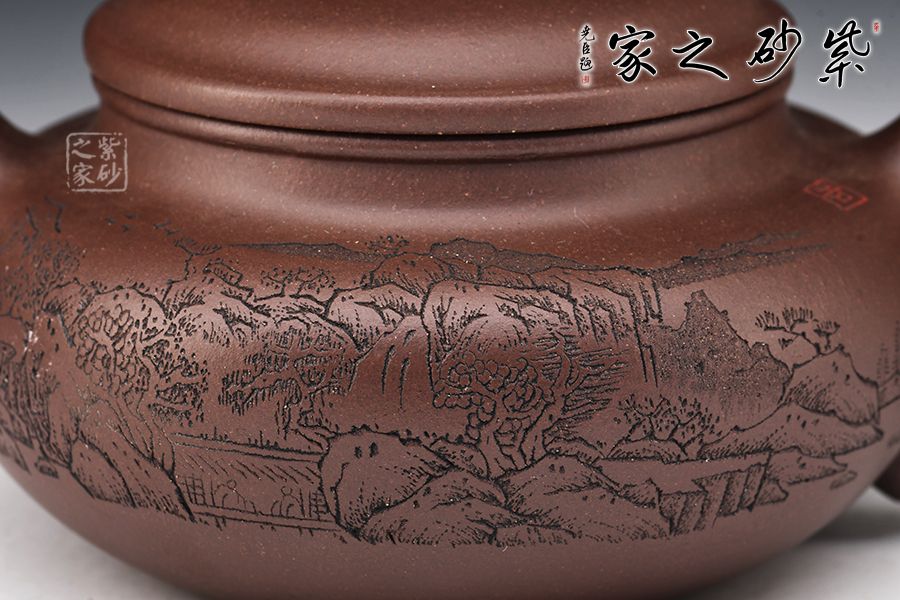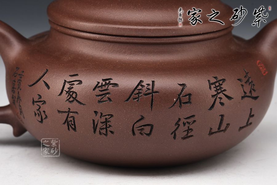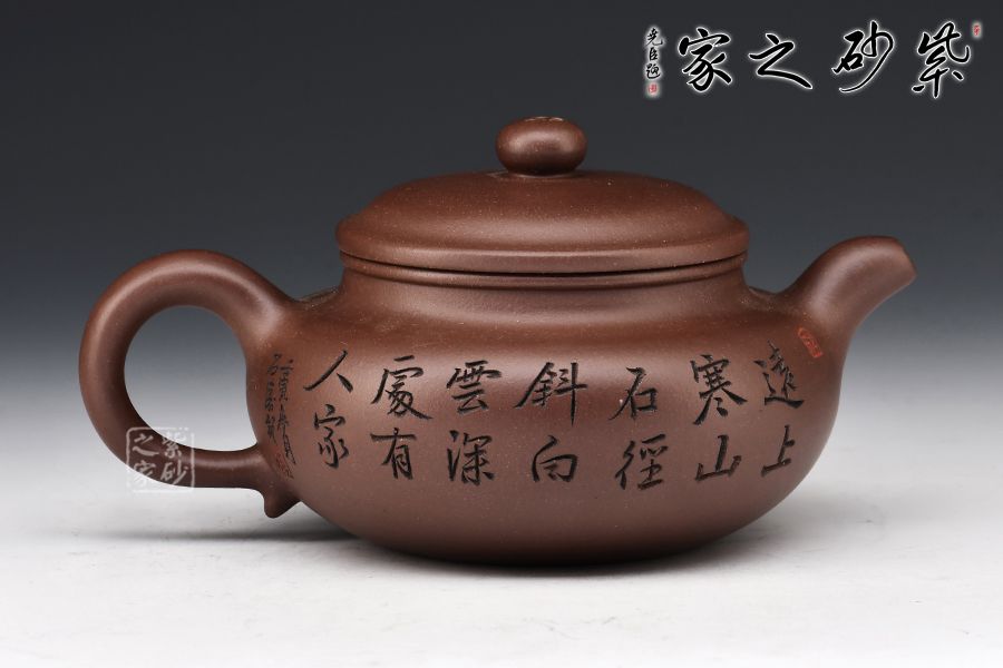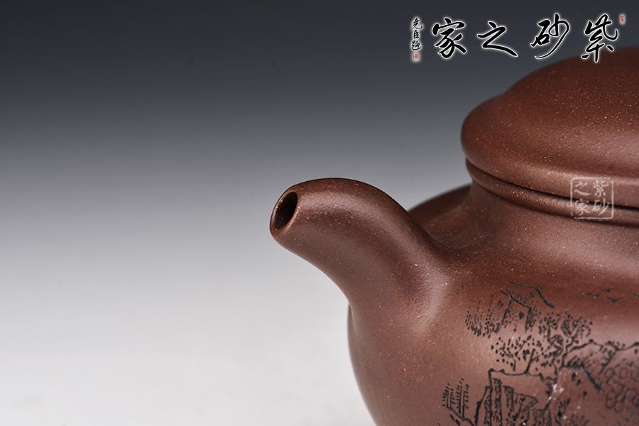 仿古最初稱之為仿鼓,自清代流傳,至今已經(jīng)有兩百多年的歷史,一直以來深受廣大壺友所喜愛,源于其古典大方的壺型和實(shí)用的功能性。此壺一彎嘴,扁圓紐壓蓋,壺把隨圈,壺腹寬圓,制作到位,乃實(shí)用之佳器。配合上山水詩詞的刻繪,觀賞性十足。