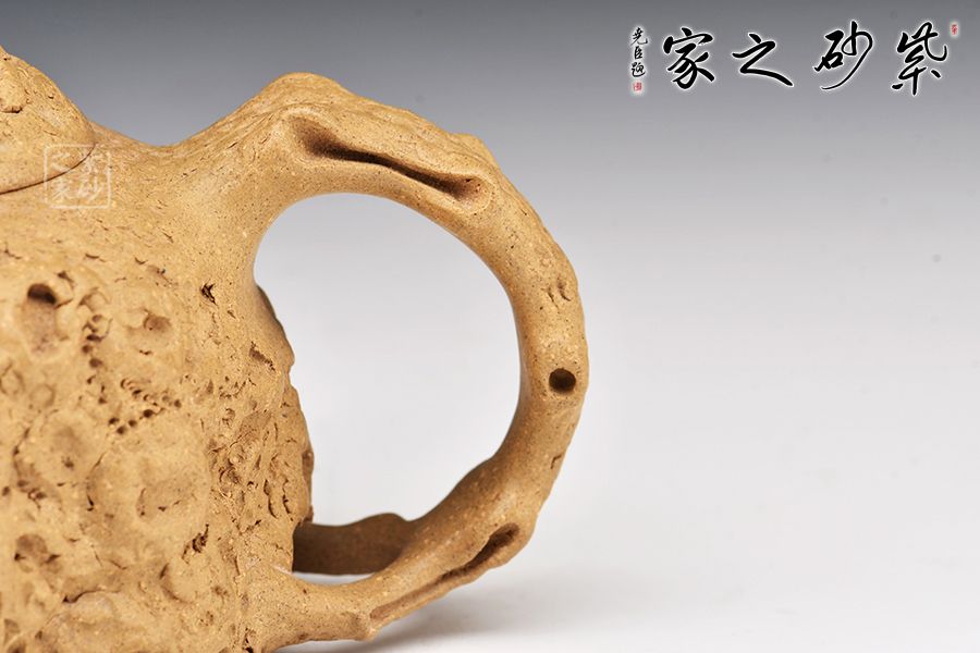 泥性:感甜嫩綿密,質(zhì)堅而溫潤,呈近田黃色調(diào),為江蘇宜興趙莊山系朱泥礦~黃石黃之共生礦,經(jīng)挑揀練製而成,因含鐵量只達6%左右,致陶之后呈“金田黃色”。