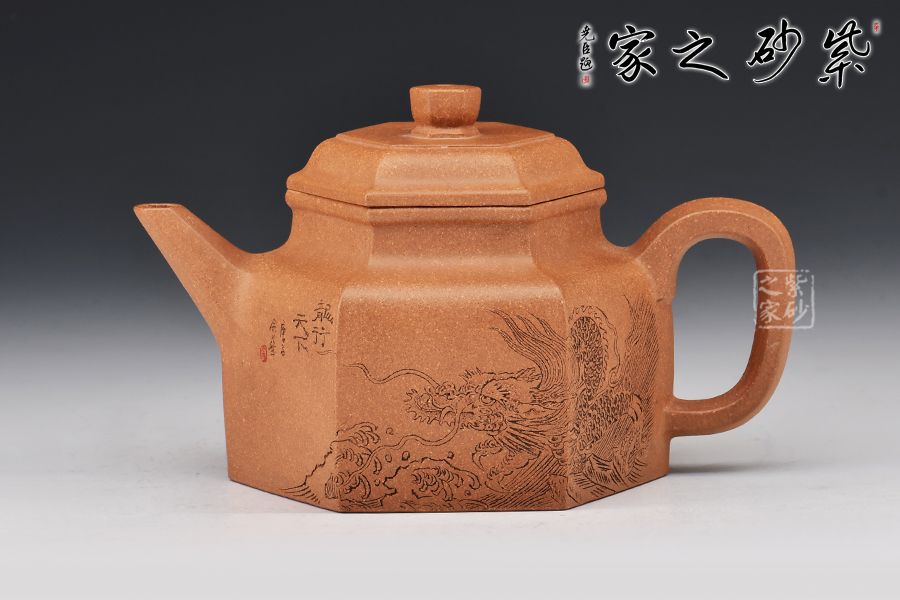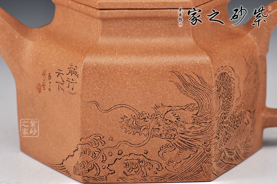 德鐘是為經(jīng)典器,以德為鐘以鐘為樂,象征君子品質,這款方壺方圓結合,端握起來舒適有力;加之雙面陶刻,更增加其文人雅致,值得把玩!