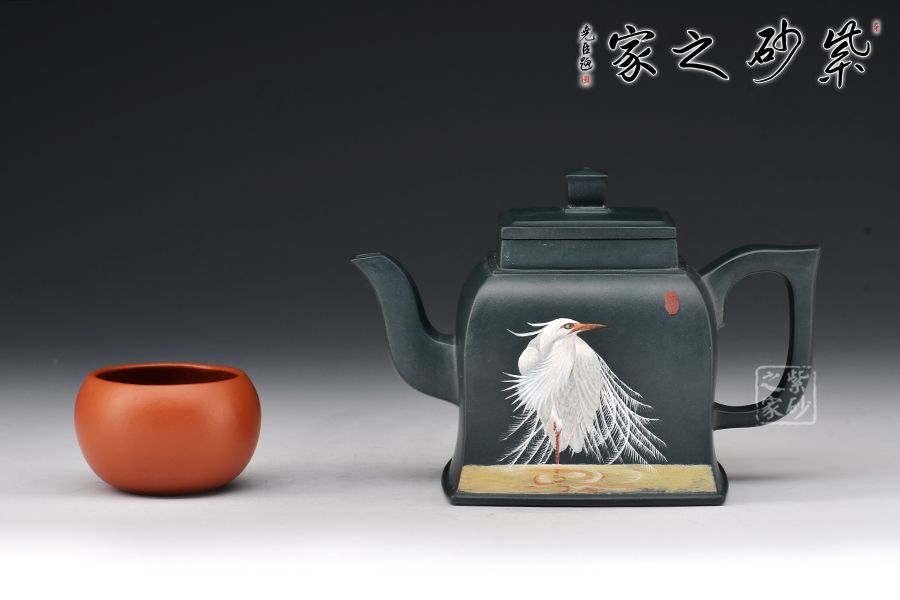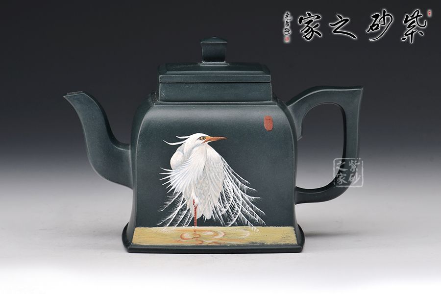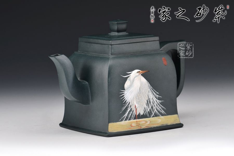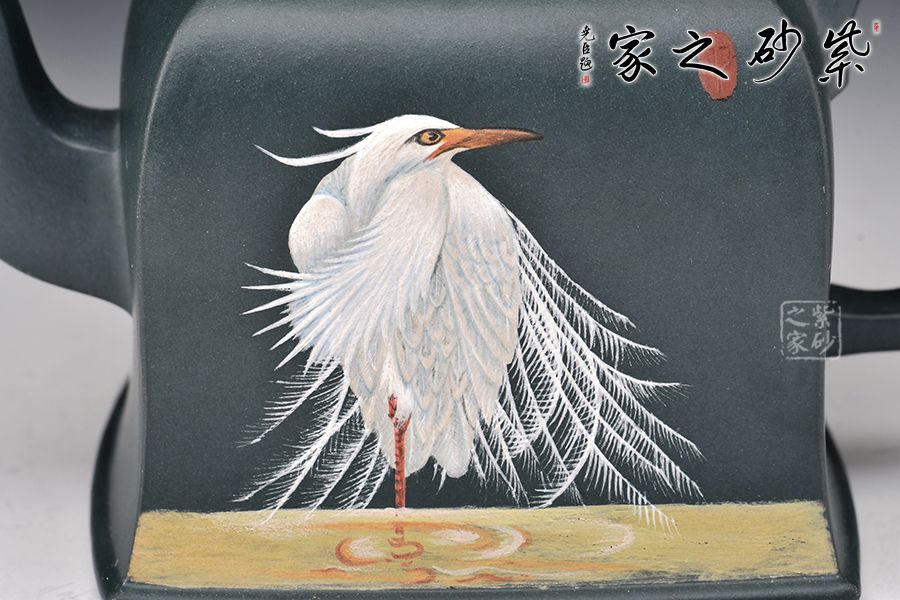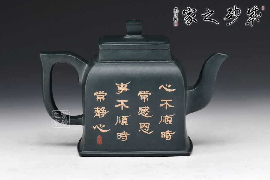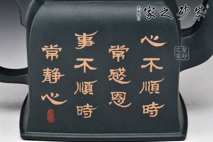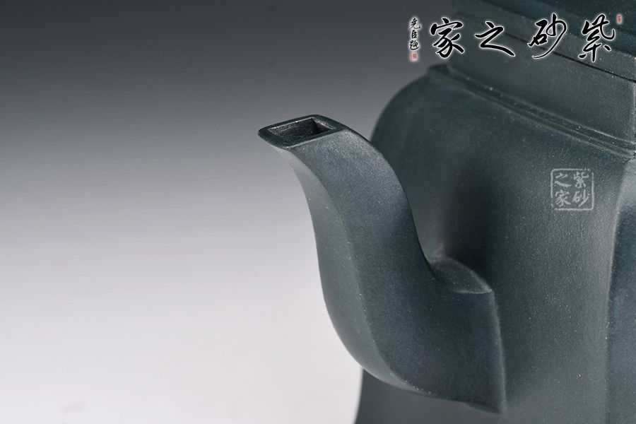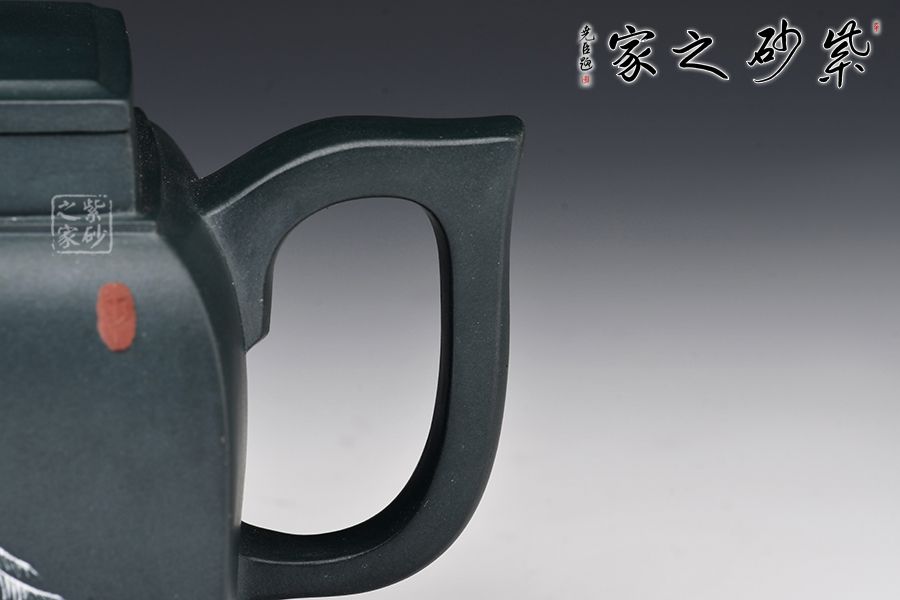 此壺在造型方面彎曲的弧度與挺括的直線完美的結(jié)合在一起,相互承載,達(dá)到方中有圓,圓中有方的感覺。