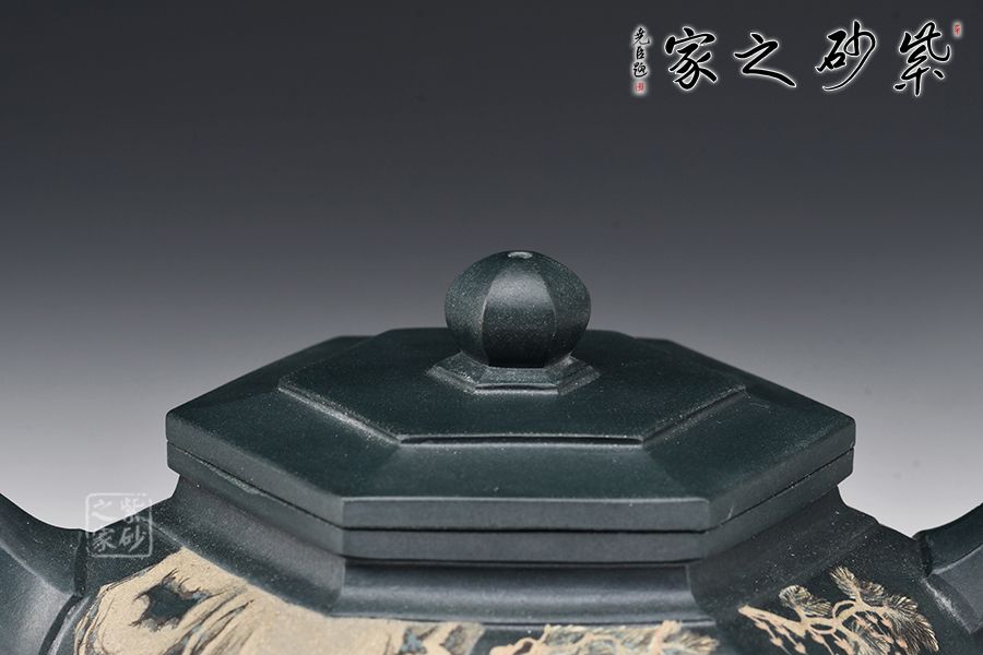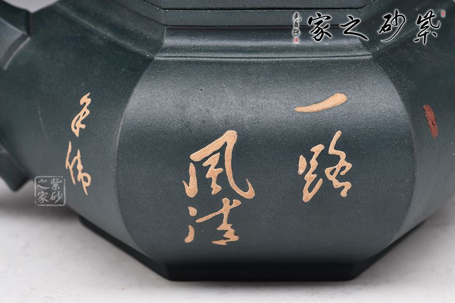 大彬六方是一款經(jīng)典方器,該壺壺身呈六棱柱型, 壺蓋與壺口相對(duì)亦呈六方圓形,六方形的小圓鈕,剛?cè)岵?jì),壺嘴和壺把呈不規(guī)則六棱形。壺的所有部位與壺形體相稱,整體線面挺括平整,有棱有角,給人明秀挺快,干凈利落的陽剛之美,做到“方中寓圓,方中求變,口蓋劃一,剛?cè)嵯喾Q”。