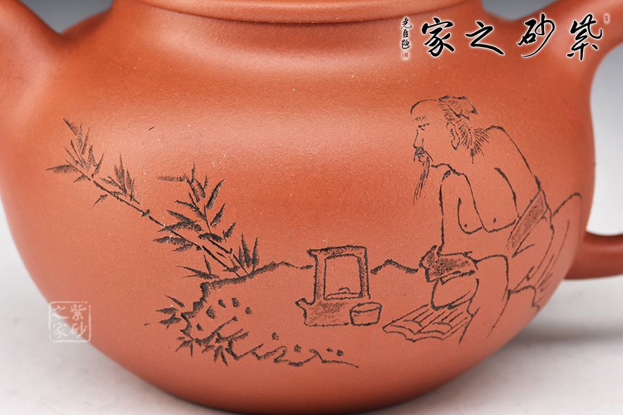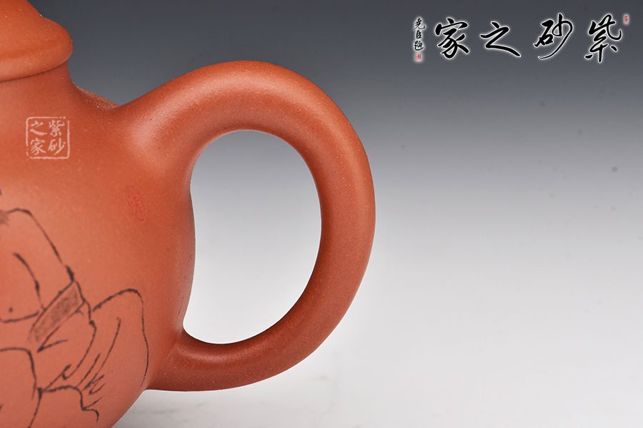 此壺飽滿圓潤,做工精湛,壺身造型十分經(jīng)典古雅,同時增添了動感,飽滿的壺嘴與壺把同壺身呼應(yīng),整體協(xié)調(diào)統(tǒng) 一;壺身圓潤飽滿,珠圓玉潤,靈氣逼人!