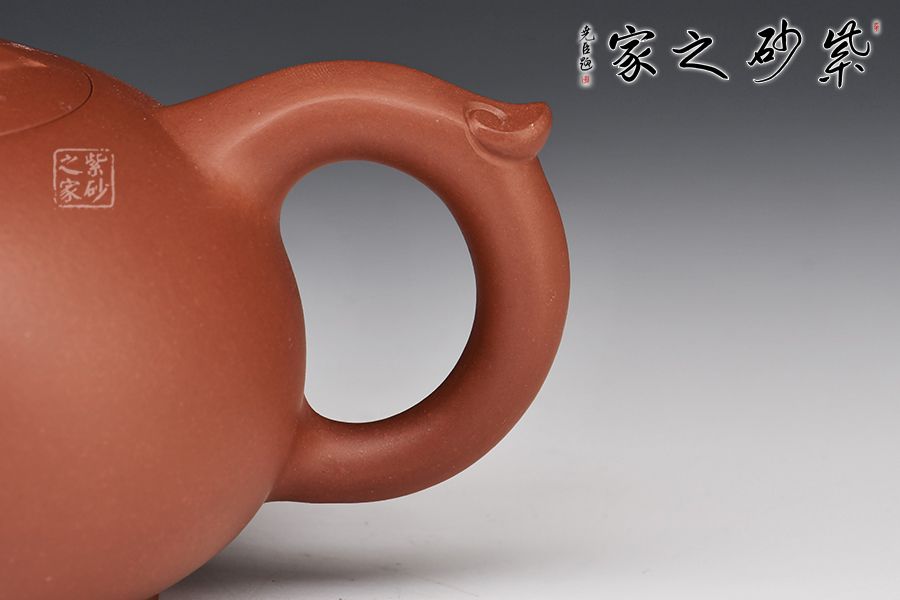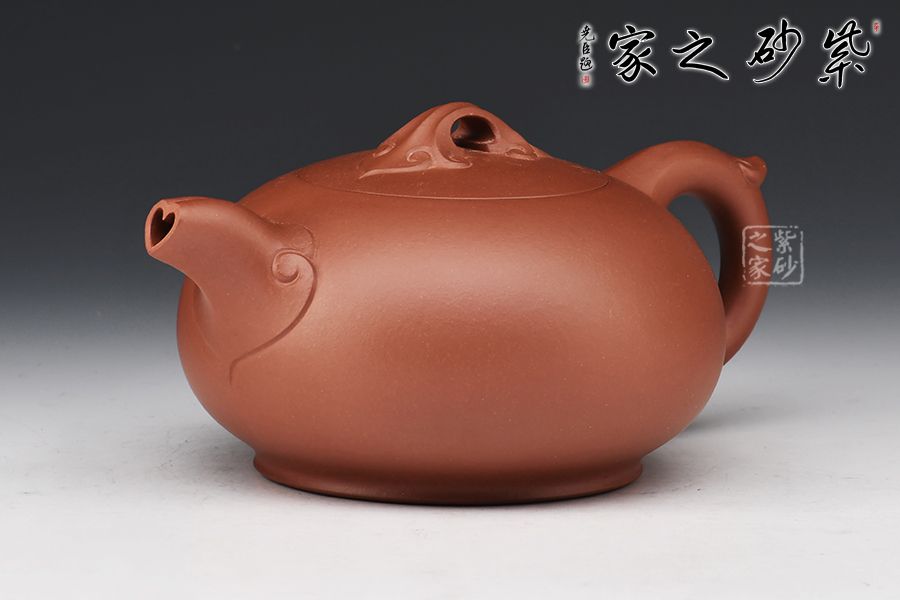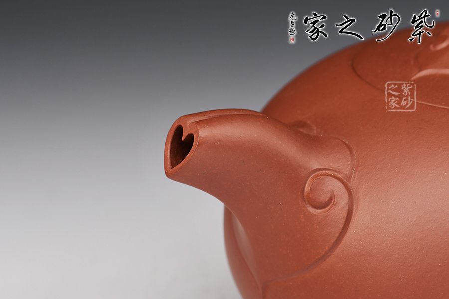 此壺名為吉祥如意,壺身圓潤飽滿,煞是可愛,壺嘴、壺把及橋型鈕,皆以如意紋裝飾,壺蓋與壺口嚴絲合縫,最巧妙的是壺流處的愛心形狀,可見作者之用心!此壺簡單而不簡約,值得入手!
