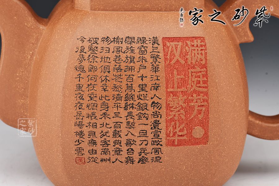 泥性:感甜嫩綿密,質(zhì)堅(jiān)而溫潤,呈近田黃色調(diào),為江蘇宜興趙莊山系朱泥礦~黃石黃之共生礦,經(jīng)挑揀練製而成,因含鐵量只達(dá)6%左右,致陶之后呈“金田黃色”。 紫砂百科全書