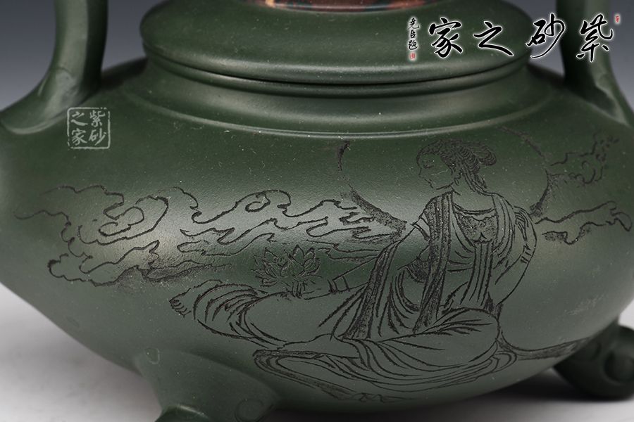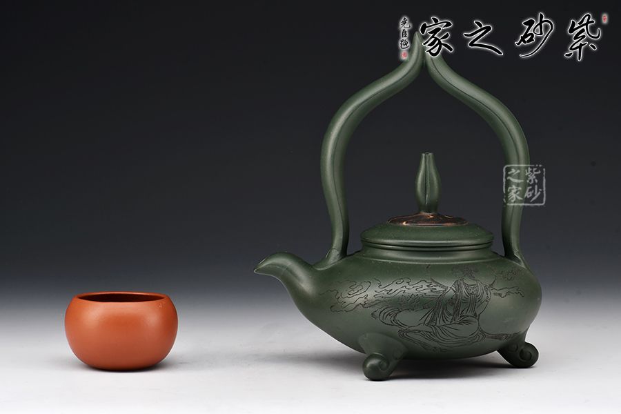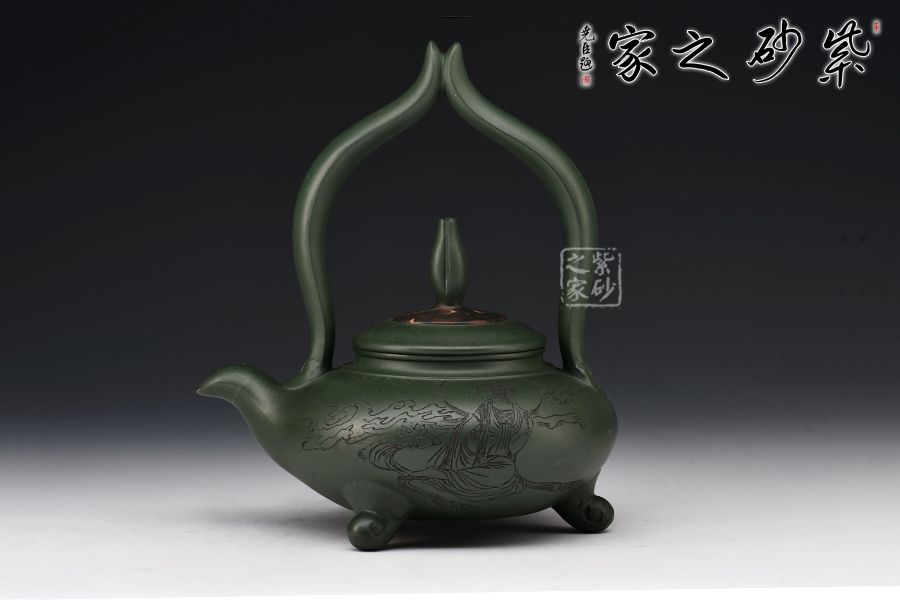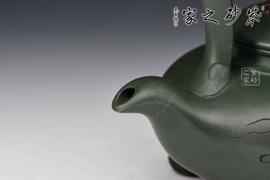 簡介:綠泥,玩者暱稱“綠豆砂泥”,古云“豆碧色”,泥色酷似綠豆皮,澹草綠。帶本山綠泥細黃砂,清麗出眾、雅俗共賞。所制壺品質感樸拙,砂質細膩而富有顆粒美感。壺品色澤米黃泛青,泡養(yǎng)后逐步轉為溫潤的亮色,包漿感好而易于泡養(yǎng),發(fā)幽然青光。產于黃龍山礦脈,是紫砂泥中的夾脂,故有“泥中泥”之稱。產量不多,泥質較嫩,耐火力也比紫泥為低。原礦色澤為青灰泛綠,成片巖狀或粉末狀,以手拿之即會沾染上原礦粉末顏色。也常作為胎身外面的粉料或涂料,使紫砂陶器皿的顏色更為多彩。