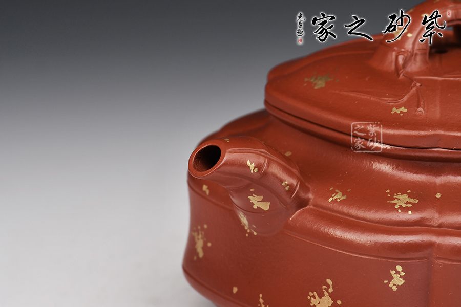 整器用線條作為壺體的裝飾,表達(dá)出秀逸、剛?cè)嵯酀?jì)、豐滿厚實(shí)的氣韻。加之撒金裝飾,更添華貴之感,值得賞藏!