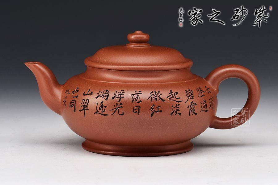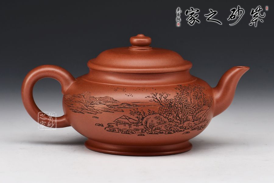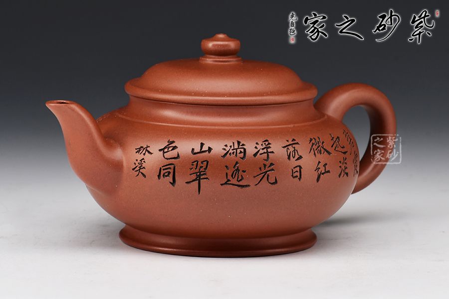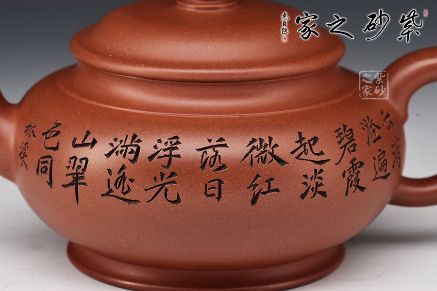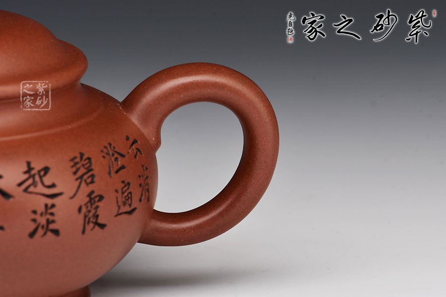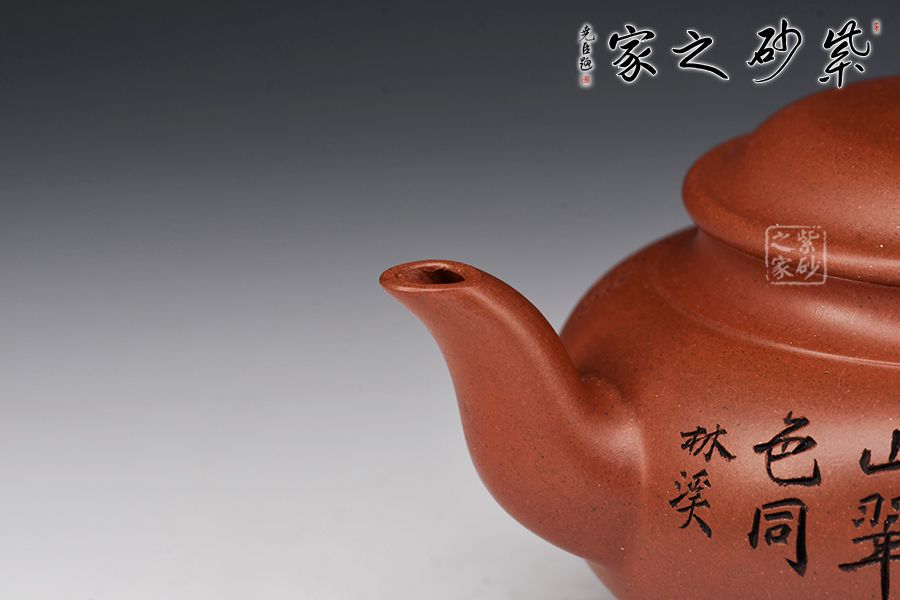 此壺精選原礦紅皮龍全手工精制而成,質(zhì)感細(xì)膩柔嫩,色澤古樸,予人沉靜之感。此壺為宮燈式,壺身十分飽滿,與水平壺相類似;壓蓋式,對(duì)接嚴(yán)絲合縫,蓋面略鼓,圓潤的壺鈕如一粒佛珠,古雅質(zhì)樸;二彎嘴暗接精湛,柔婉婉轉(zhuǎn),嘴型經(jīng)典傳統(tǒng);耳形端把,弧度流暢緩和,端握舒適。