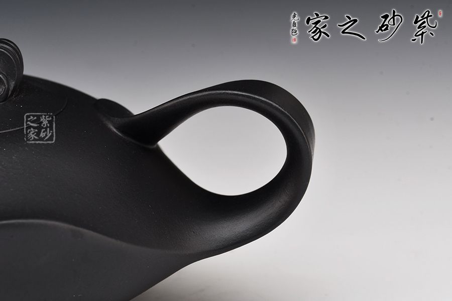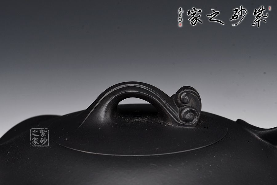 《水云間》此作以充滿韻律的線條將水與云流動的狀態(tài)詮釋的恰如其分。云與水本就無具體形態(tài),作者通過紫砂的塑造賦予了水與云鮮活的生命形態(tài),波浪形水紋橫貫壺身,連接流與把,壺蓋上塑如意臥成壺鈕,揚起的壺把與線條韻勢一致,充滿美感。靜觀整體,如登仙境,把飲黃昏后,靜臥水云間,彩云由我舞,揮清一片天。必番意境,著實令人流連忘返。