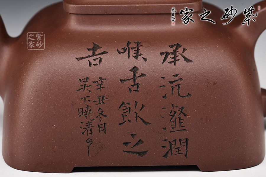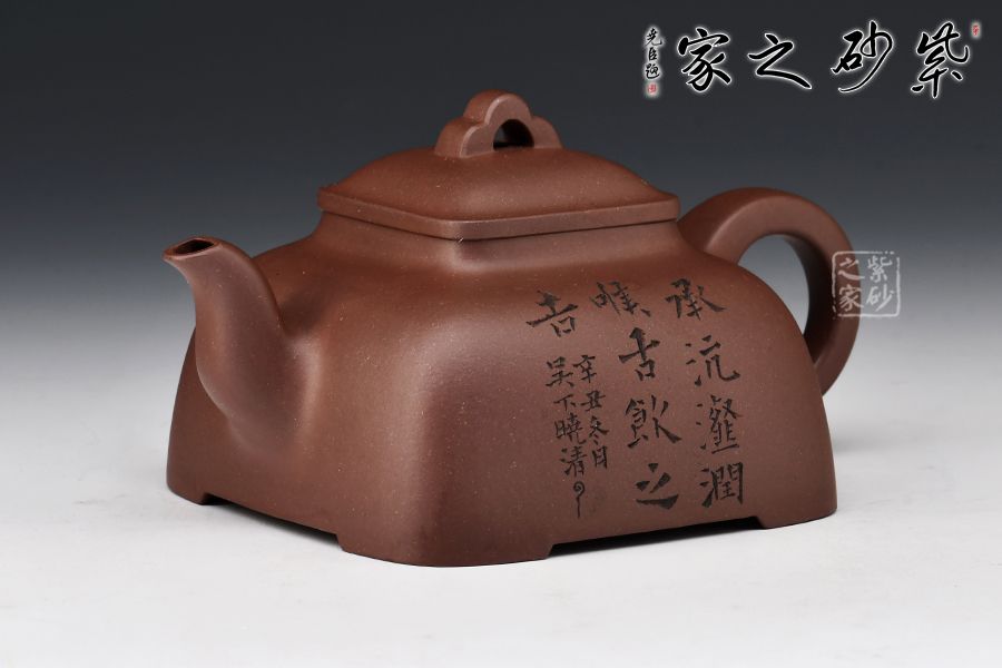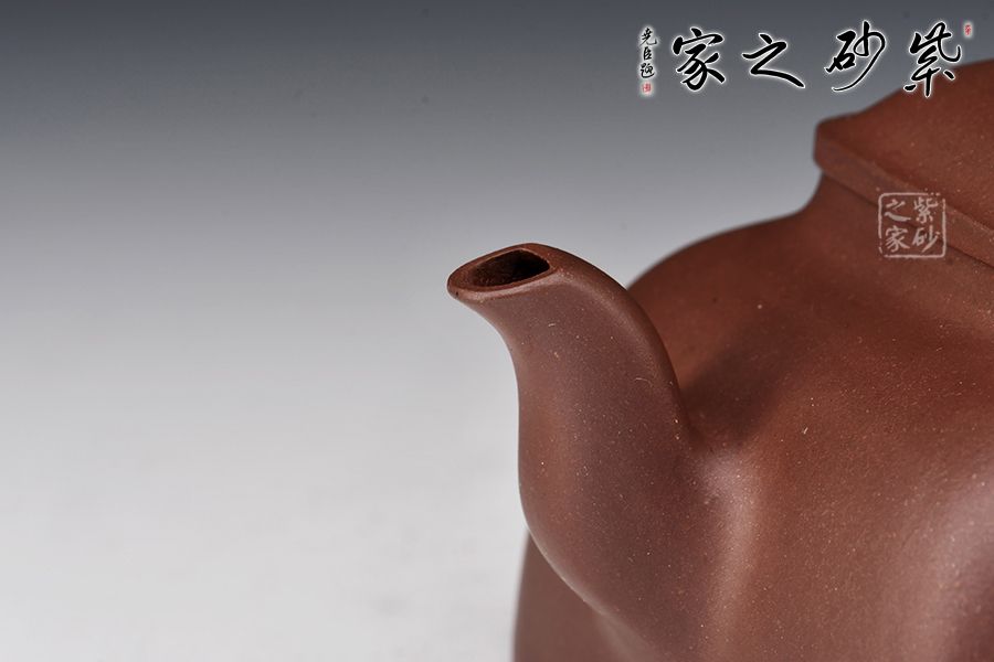 壺型古拙典雅,壺把拿捏舒適。壺形底方肩渾,下寬上收,穩(wěn)重而雅致。至頸項(xiàng)與口沿交接處再度渾方,壓蓋嚴(yán)絲合縫,祥云壺鈕,寓意吉祥。四方足托空壺體,呈虛空感,流二彎順胥,把耳孔與壺身協(xié)調(diào)一致。線面流暢,菱角清晰而圓渾,適宜把玩。線條處理干凈利索,精工細(xì)作,嚴(yán)謹(jǐn)而不失古韻,你值得擁有。