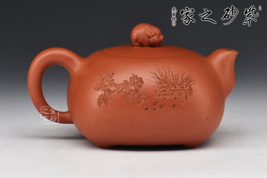 此壺采用原礦清水泥制作 以小豬為題材 整器憨態(tài)可掬,大方得體 豬豬的寓意非常好 招財納福,由王瀟笠國大師純手工制作,送人自用收藏皆宜