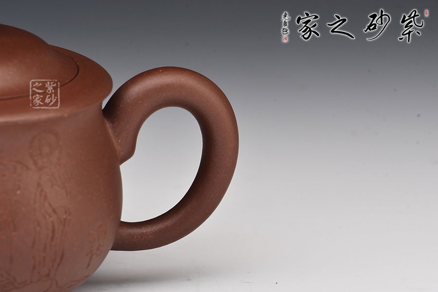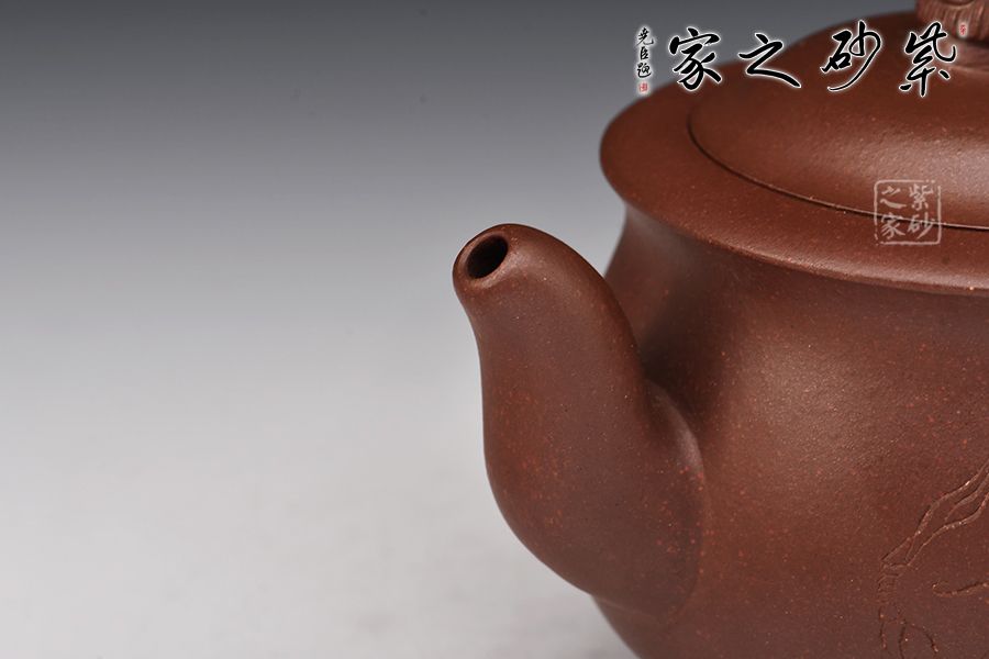 整器取自然之形,壺身圓潤,飽滿豐腴,節(jié)疤分布合理,得生動(dòng)之意,妙。壺之流、把、鈕取形自樹樁,癭節(jié)分明,仿生自然,其中彎曲而成的鈕、把均流出枝葉、果實(shí)于蓋面、壺肩,靈動(dòng)唯美,頗具自然氣息。 未養(yǎng)先潤、骨肉亭勻、比例協(xié)調(diào)、雋永耐看。此器不僅有著極高的實(shí)用性,意蘊(yùn)更是深厚,蒼秀清雅,給人以翩然的動(dòng)態(tài)感,甚是惹人喜愛。