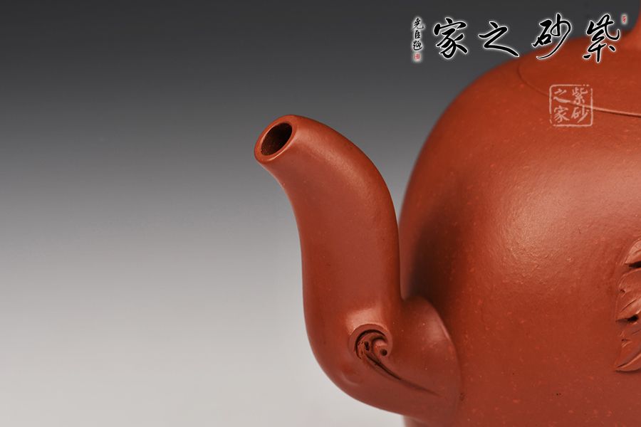 特點:原礦因含緞泥、紅泥、紫泥等諸多共生礦,陶之后,于深沉之“橙紅色”底上,滿佈五彩斑斕的粗細(xì)、深淺之紅、黃星斑點。