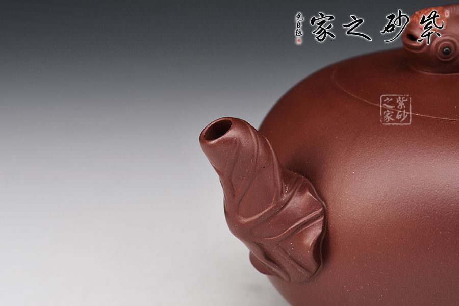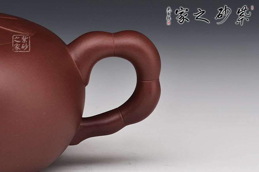 特點:棗紅泥比較稀有,泥料內所含顆粒較大結構疏松器身明顯成雙氣孔結構,空氣對流順暢氣孔對流較好。