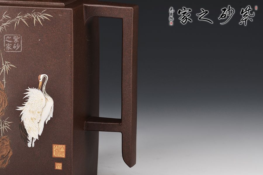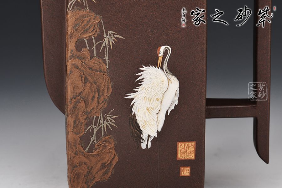 壺身泥繪仙鶴、竹石,過墻泥繪難度大,與壺的主題相得益彰,壯志凌云,讓人心生豪邁之氣概。