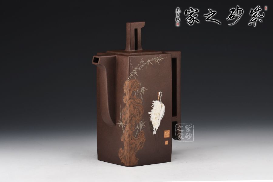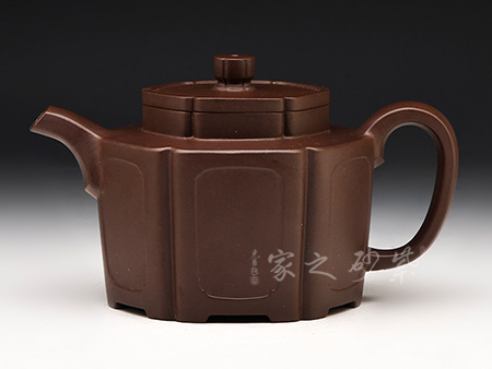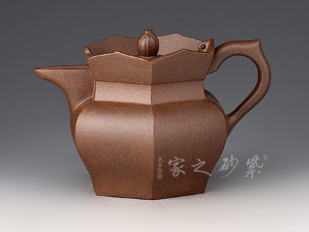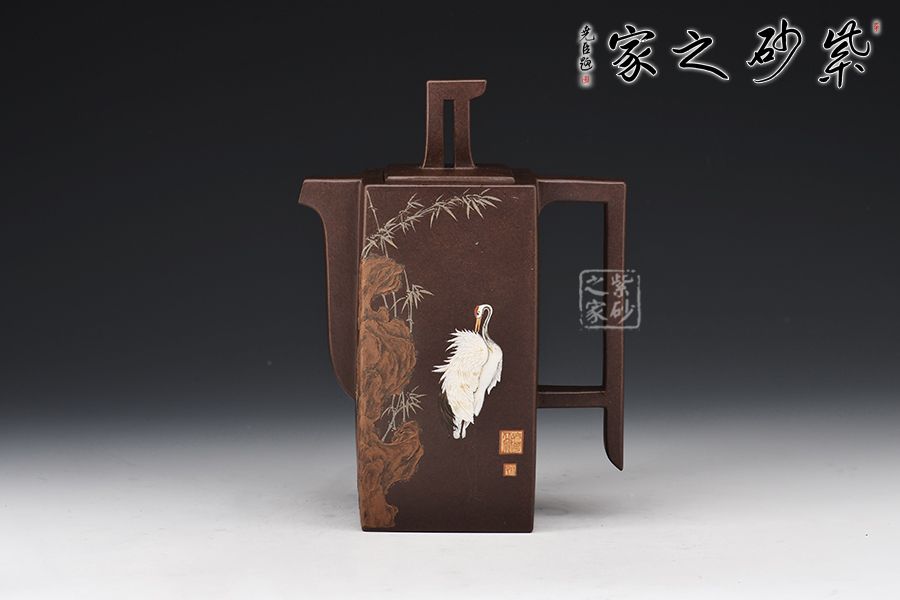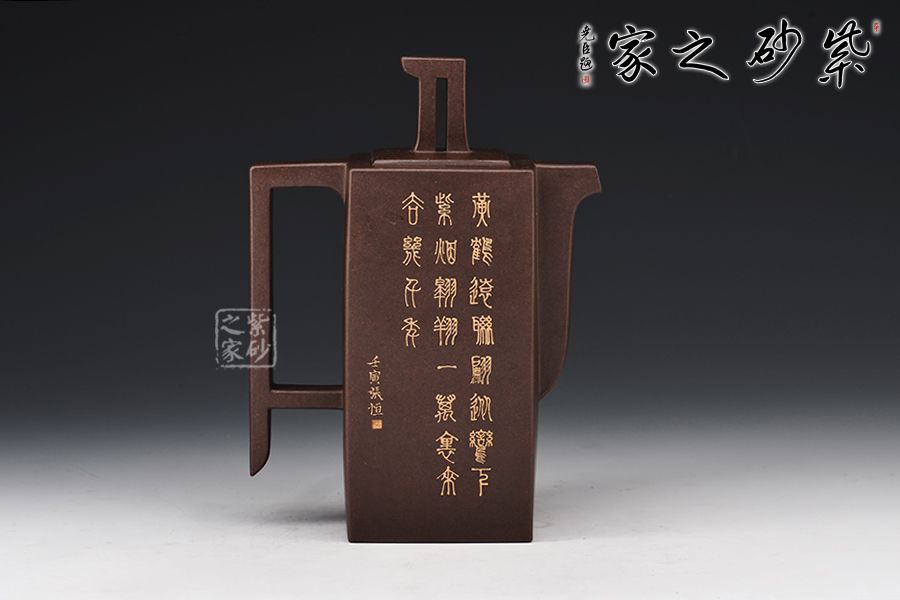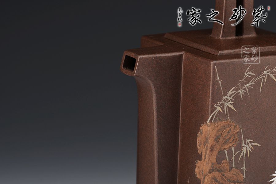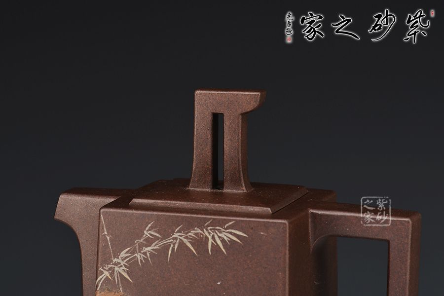 此壺造型大氣又注重美學效果,風格高雅,壺身氣韻飽滿,壺把、壺嘴、壺蓋設計構思巧妙,方器的莊重之下又有靈氣,給整把壺增加了靈韻,磅礴大氣。