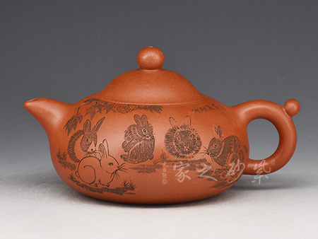 特點:塊狀中有青綠色的"雞眼"、"貓眼"、色呈偏紫泛青,細(xì)而純正, 十分稀少.燒成的壺呈現(xiàn) 紅豬肝色,燒成顏色具體要看礦料的成分構(gòu)成和燒成溫度。