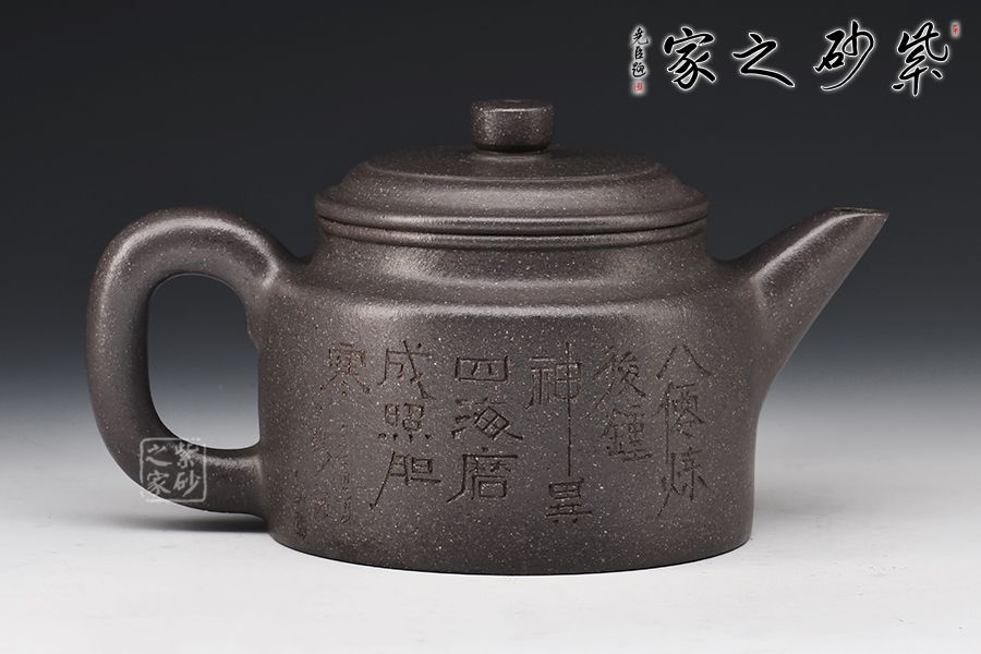 德鐘壺:大亨光素器造型中的一件代表作,是流傳至今的經(jīng)典壺型。劍流德鐘壺壺身圓滑,直而不癟,是紫砂直壺身筒中極為精湛的變現(xiàn)。