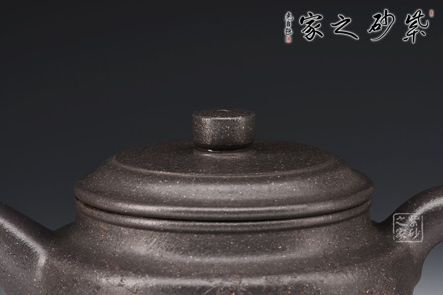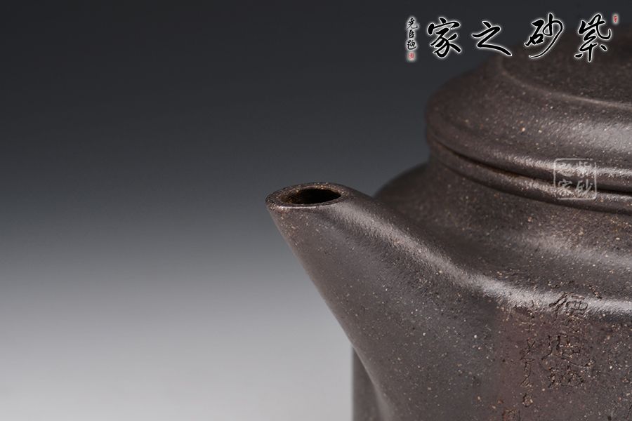 壺把舒曲自然,壺嘴挺而潤,處理干凈利落。壺肩線條圓轉(zhuǎn),過度極其流暢。鋬流根部與肩線自然結(jié)合,各自延伸化轉(zhuǎn),呈疏朗大氣之韻。壺口子母線咬合緊致,壺蓋微鼓起,壺鈕圓潤有光澤。
