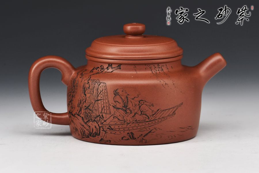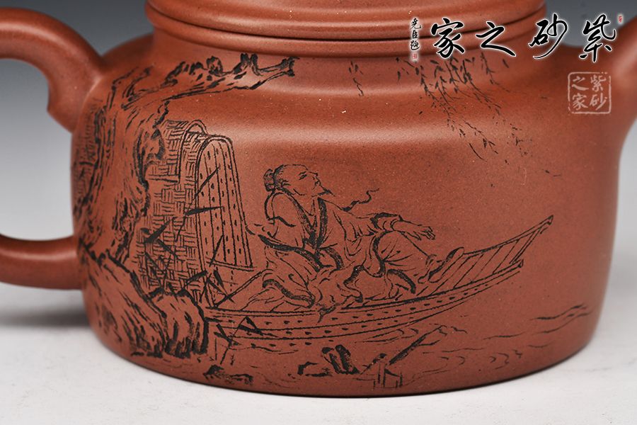 壺身之上,刻繪雅士舟游圖,古色樸雅,值得珍藏!