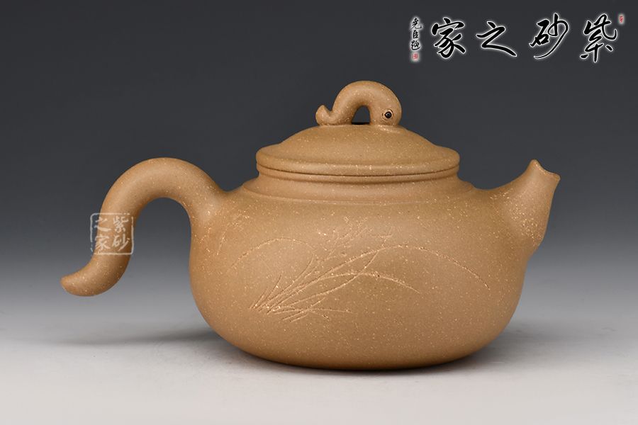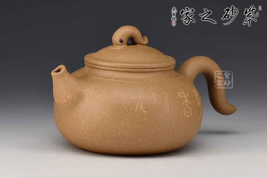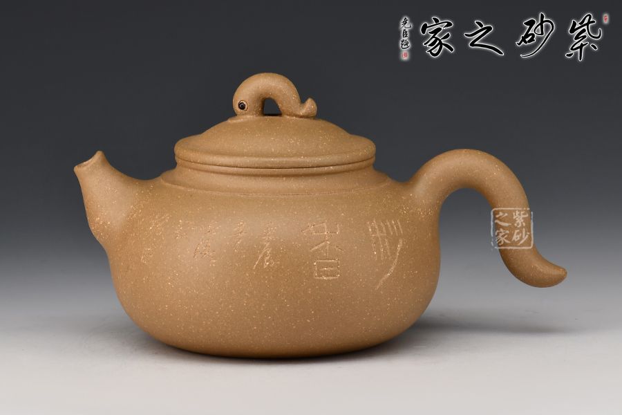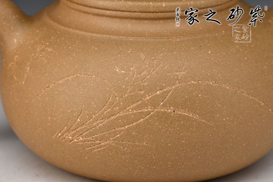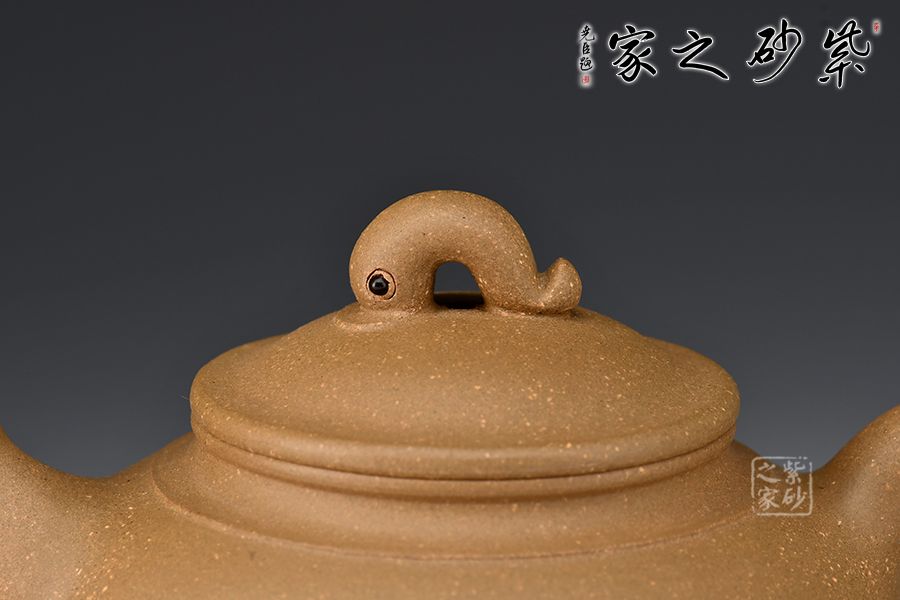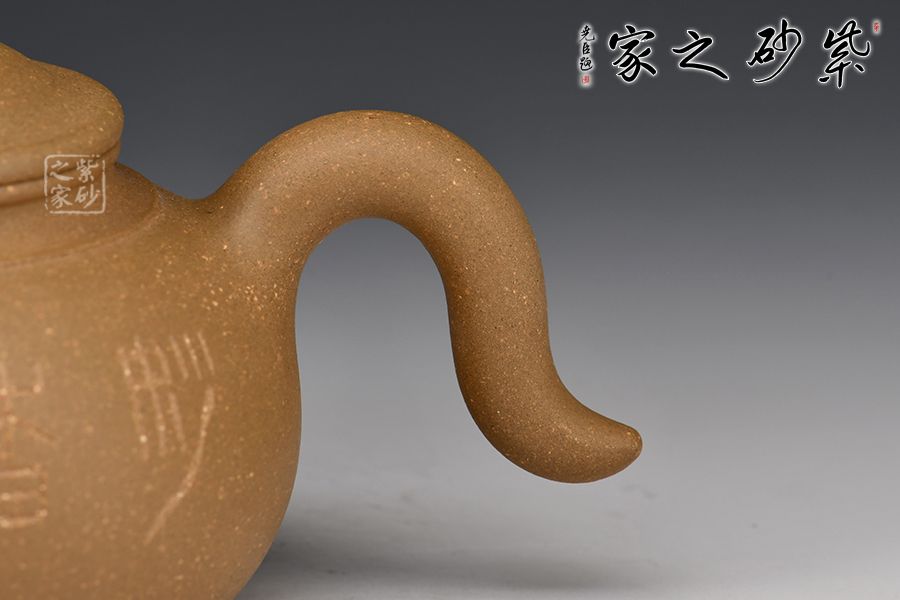 此款心語(yǔ)壺圓潤(rùn)飽滿(mǎn),刻繪裝飾,文人氣息十足。壓蓋設(shè)計(jì),嚴(yán)絲合縫,壺鈕形似魚(yú)兒,小巧可愛(ài)。粗把、粗嘴,憨態(tài)可掬,線(xiàn)條流暢自然,圓潤(rùn)自如。