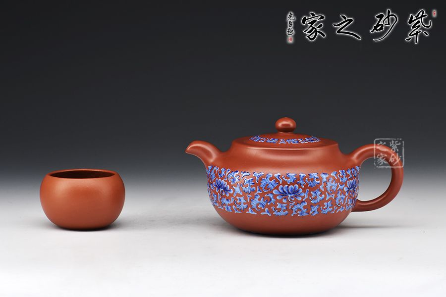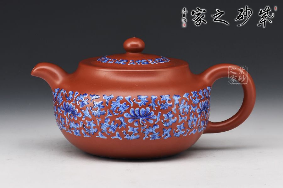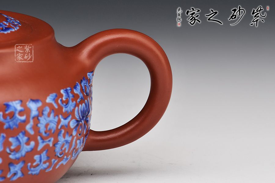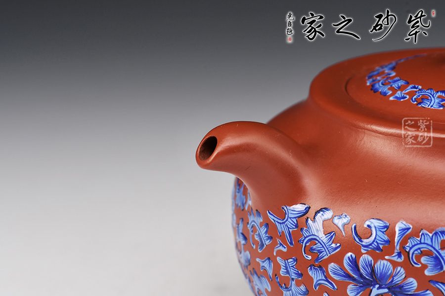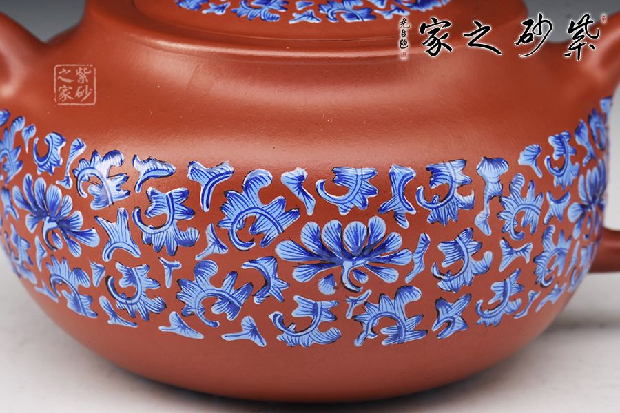 壺腹飽滿(mǎn),線(xiàn)條流暢。青花琺瑯彩裝飾,格調(diào)高雅,可玩可賞! 一彎嘴出水爽利,耳把拿捏舒適,嵌蓋嚴(yán)絲合縫,寶珠壺鈕小巧可愛(ài)。350cc中品容量,實(shí)用性佳!