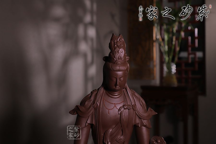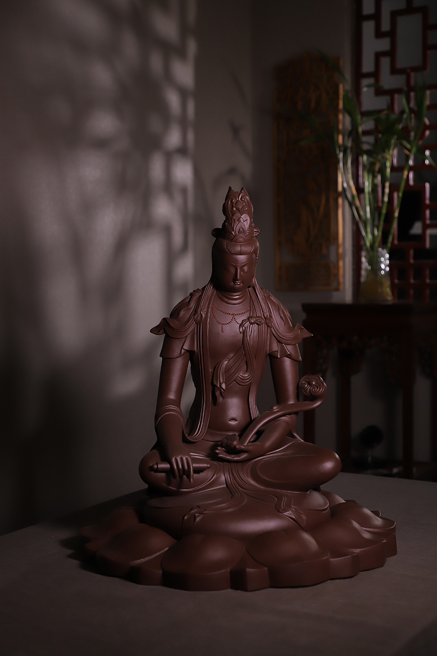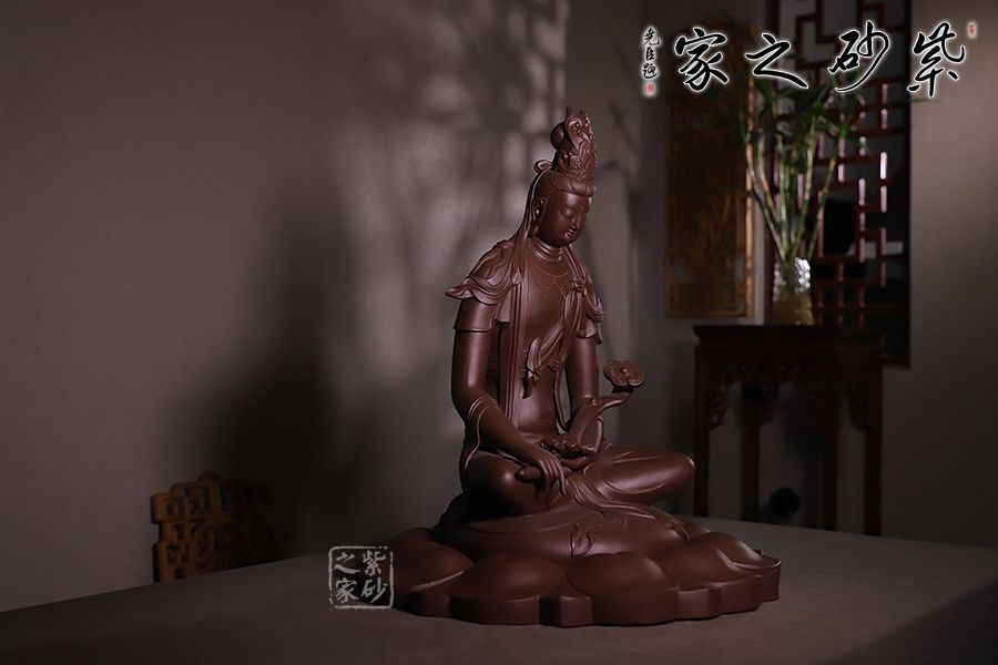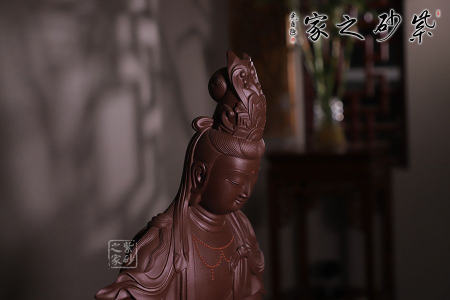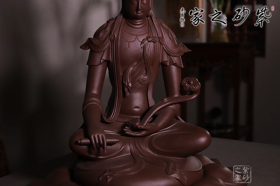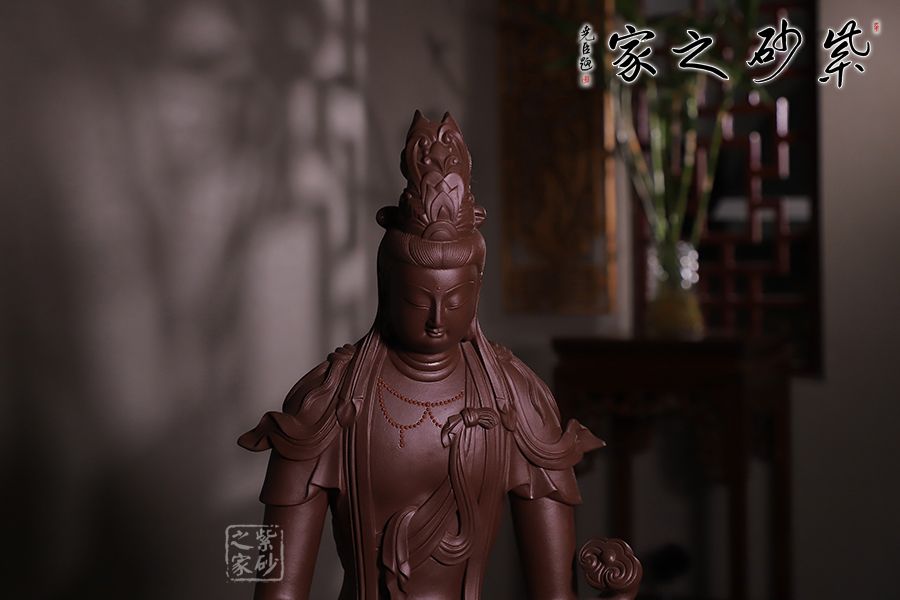 特點:泥色成熟穩(wěn)重、端莊肅穆,作品大小皆宜,呈棕紫色調(diào),能安定心靈,親和力甚佳。