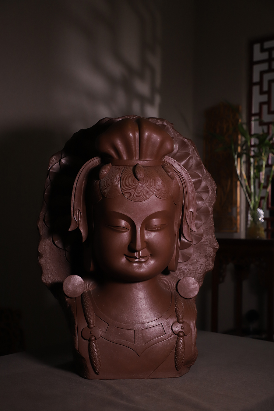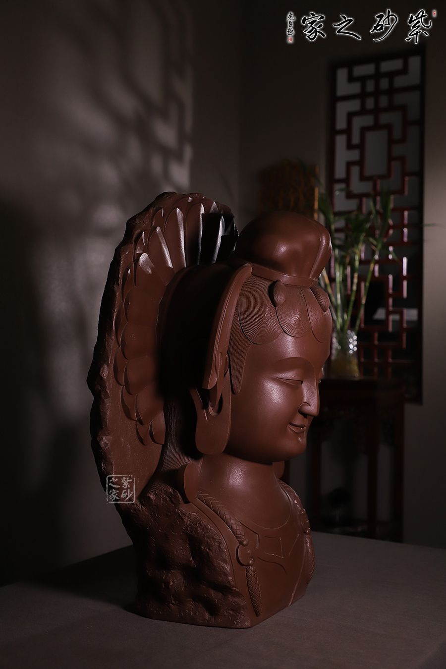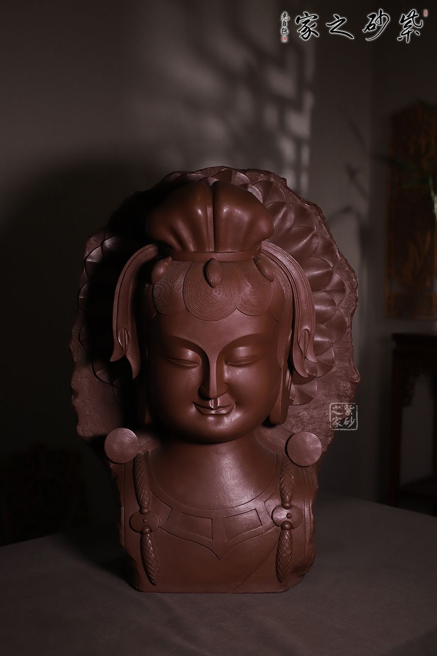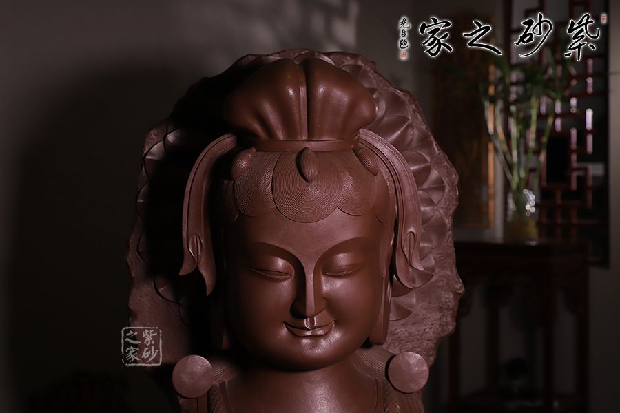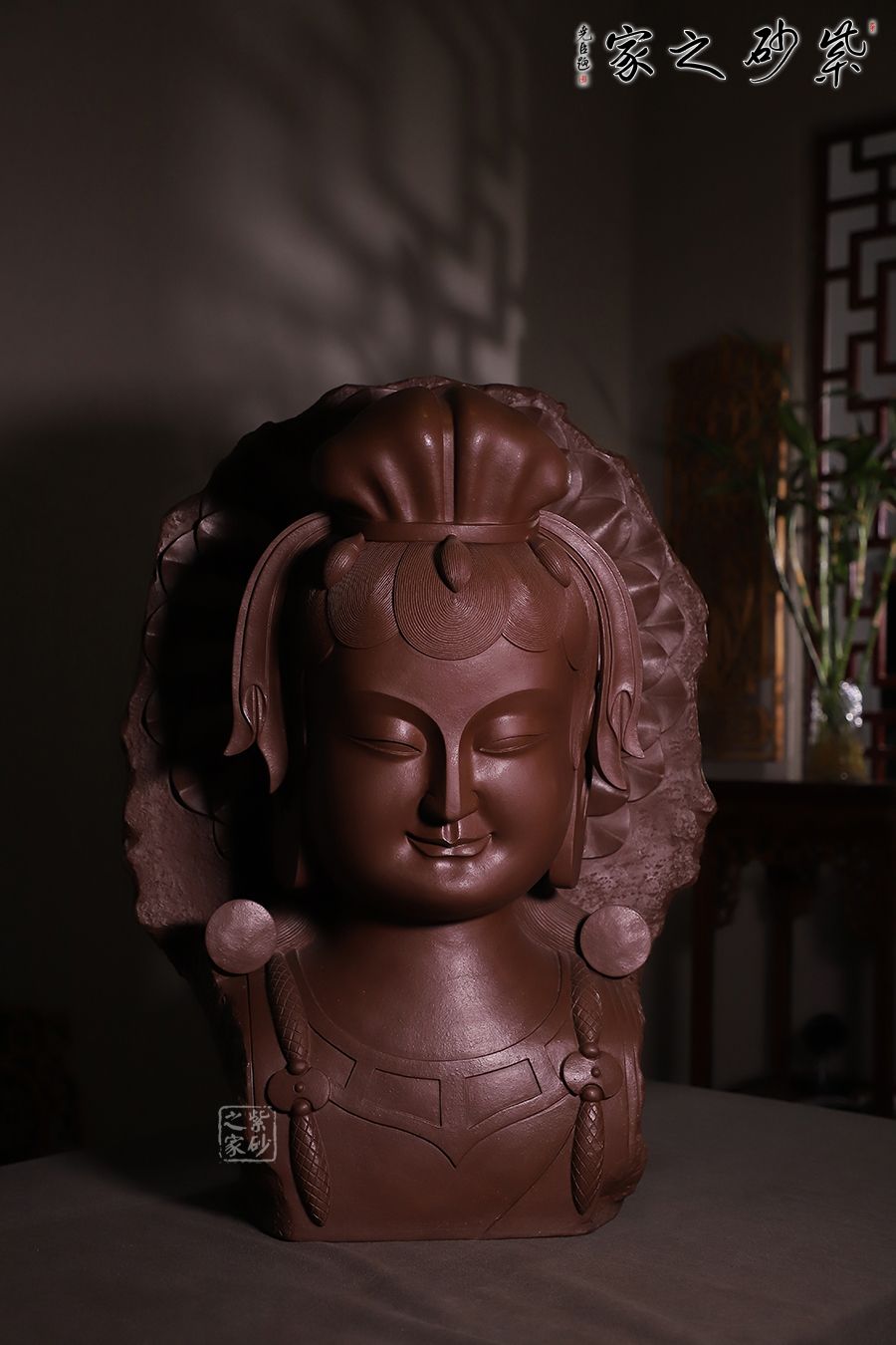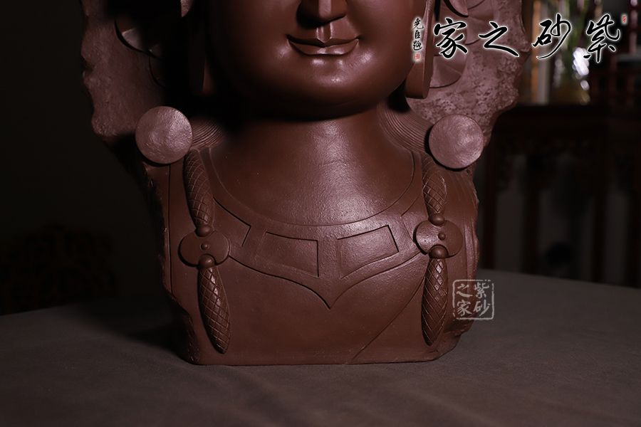 特點:泥色成熟穩(wěn)重、端莊肅穆,作品大小皆宜,呈棕紫色調(diào),能安定心靈,親和力甚佳。