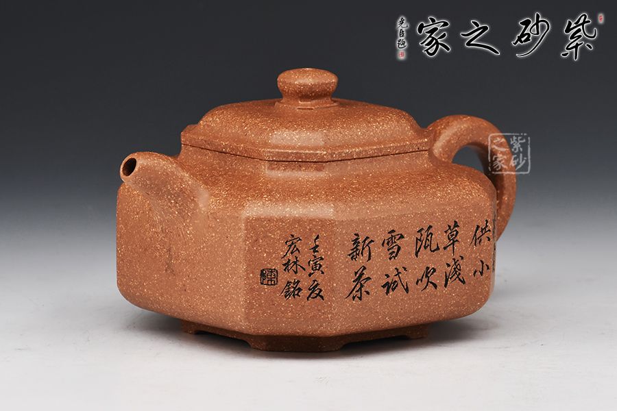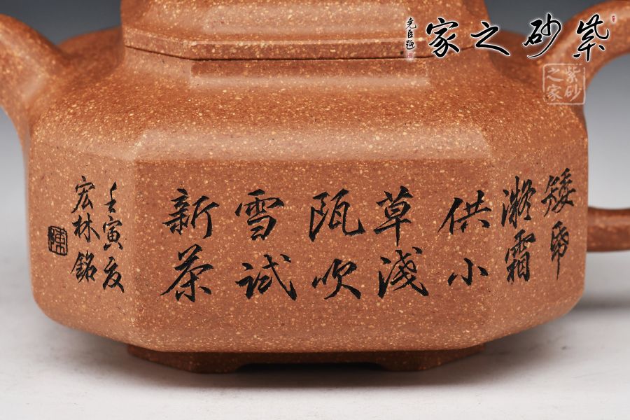 在中華吉祥文化中,八方不僅僅是方位,更是展現(xiàn)了一種通達的氣度。“四通八達”、“八即是發(fā)”,蓬勃向上之發(fā)達生機勃勃之喻,無不受人喜愛。 這把矮八方壺,爽凈精當,通體以“八”意呈現(xiàn)。壺形雄偉剛正,在八方之中透以圓意,使人觀之有成熟大氣、方正不阿之感,充滿對未來的憧憬與希望。 謙謙君子之風,在品茶讀壺之外,有詩句之心悟,是以彰顯我之志向,不泥古,不同流,探新求變,剛直不阿。