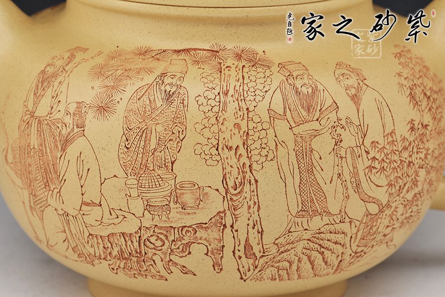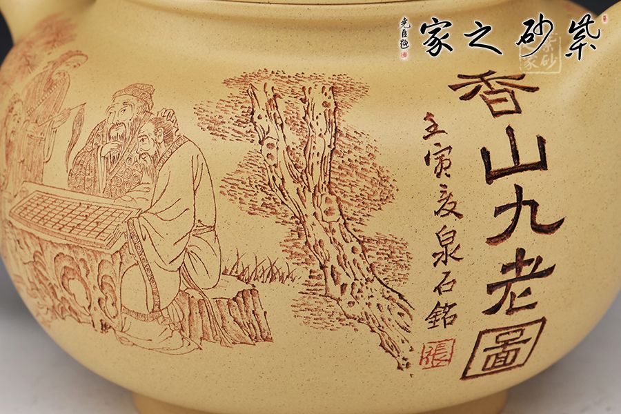 壺身刻繪香山九老圖,落刀成天趣,濃淡深淺中殊無雕琢之意,最為灑脫。