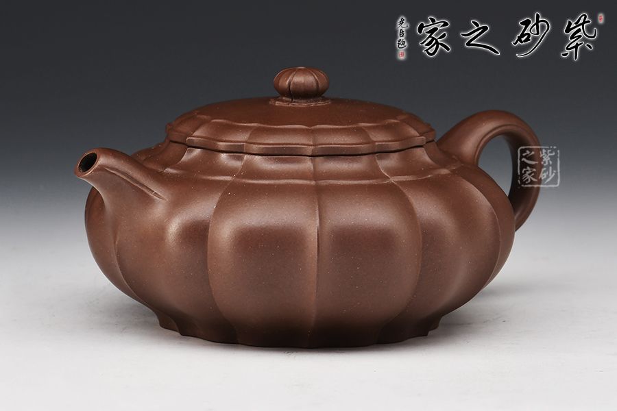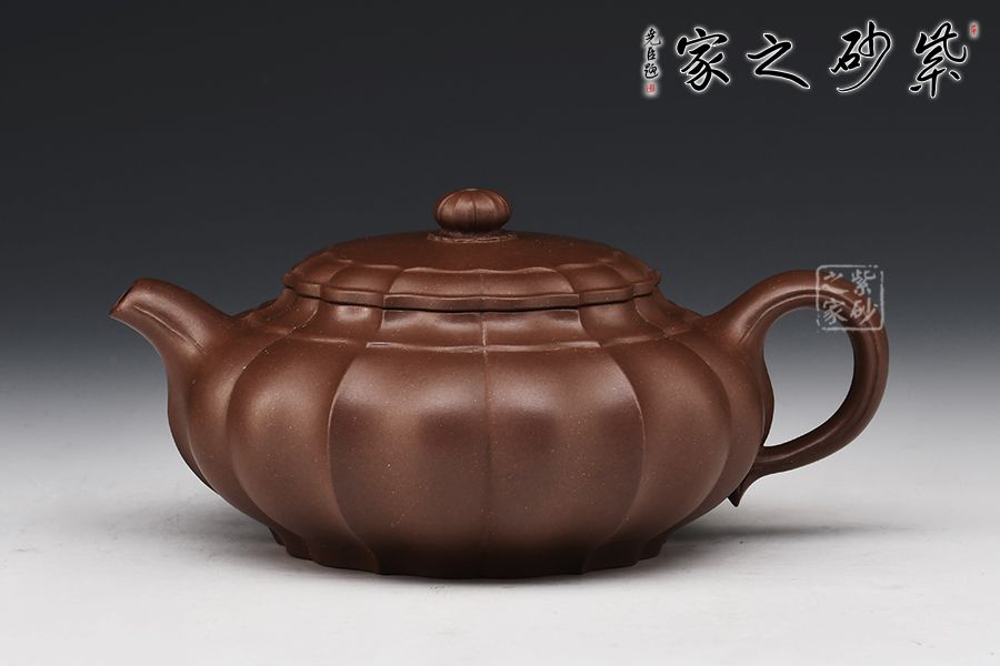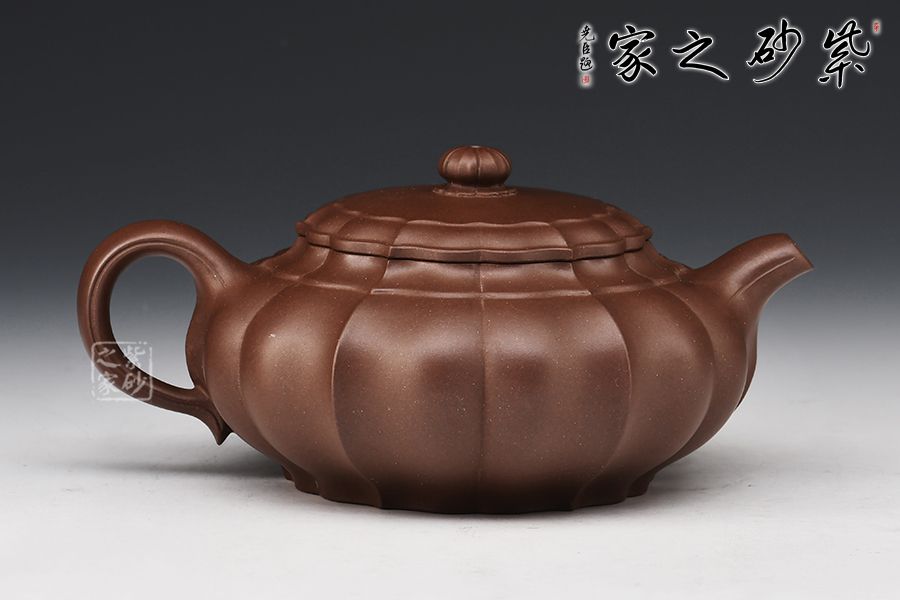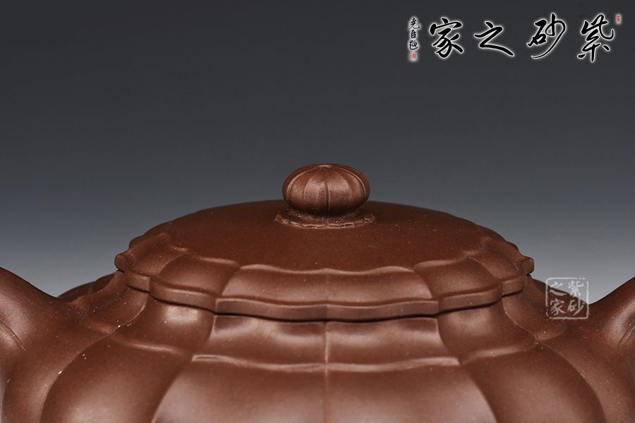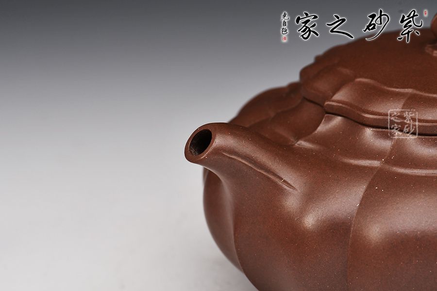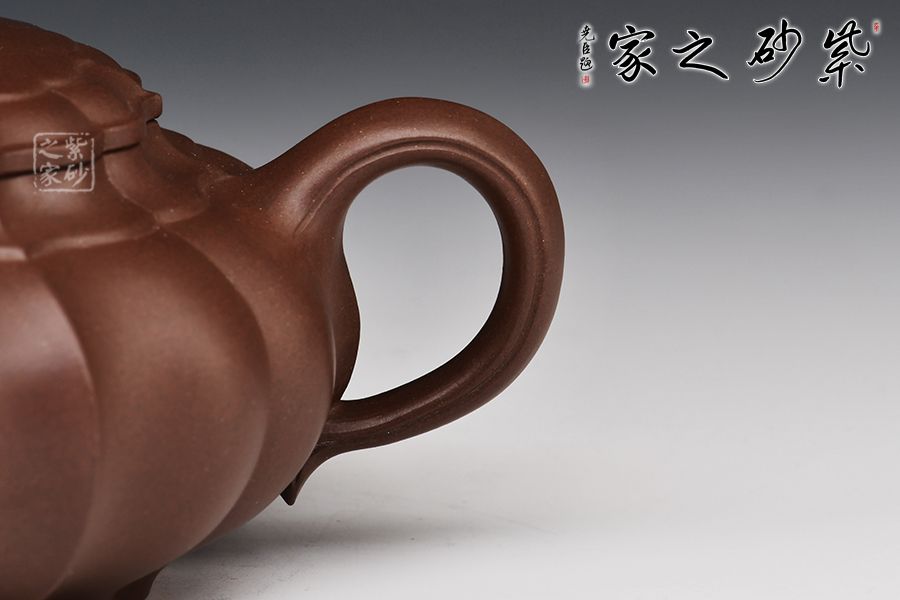 此壺壺體雄健渾厚、圓潤(rùn)適度,莊重肅穆卻不失靈逸,虛實(shí)之間收放有道。壺身筋紋凹凸相間,比例勻稱,壺蓋壺鈕與壺身線條吻合,一彎嘴順和秀麗,圈把圓韻相扣。