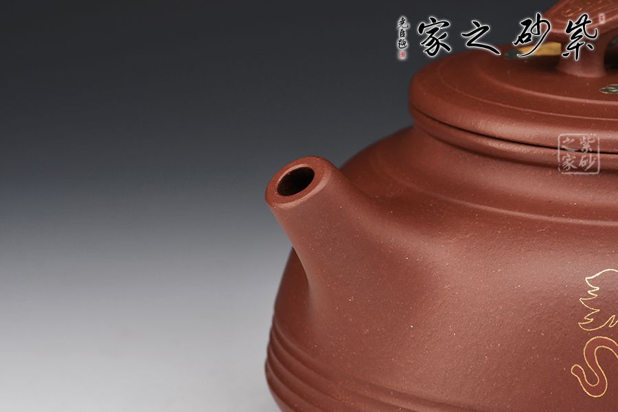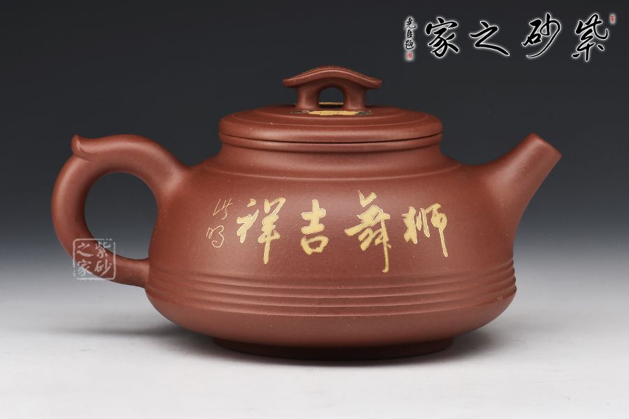 此壺選用原礦清水泥精制而成,成色古雅。圈底穩(wěn)重,壺身幾條腰線成點(diǎn)睛之筆,壺體簡約大氣。壺鈕如涼亭,方便拿捏。直流壺嘴出水爽利,與小飛把相互呼應(yīng)。壺身裝飾獅舞吉祥,寓意生活吉祥如意,事事平安。