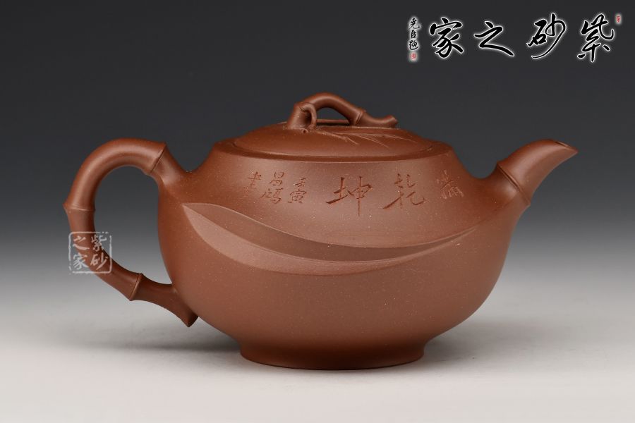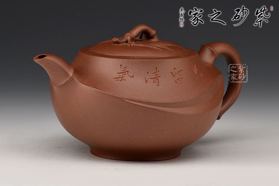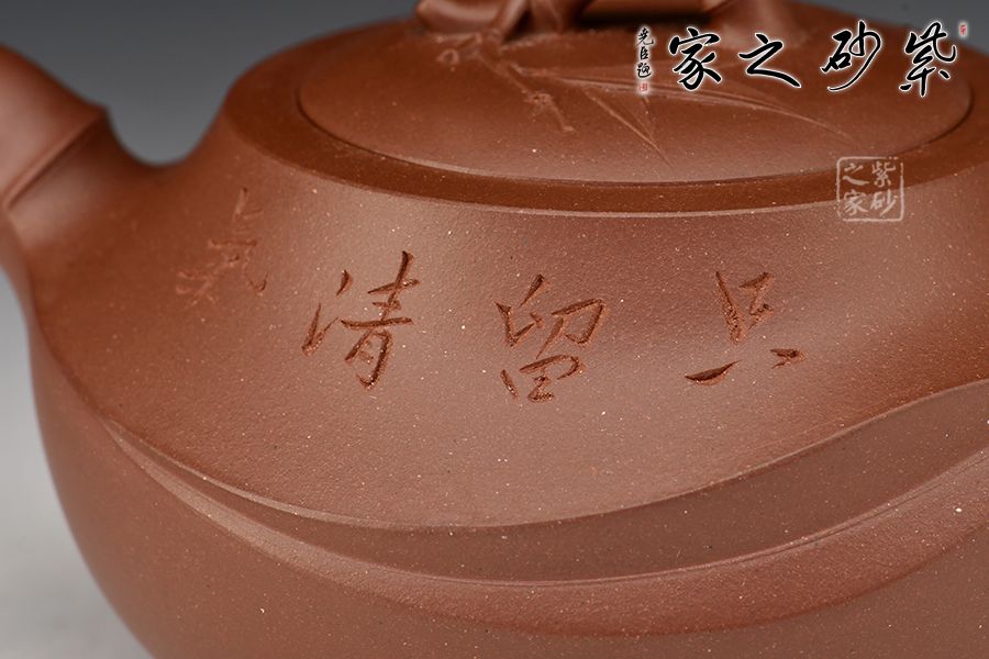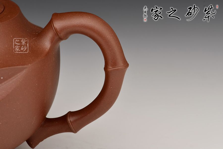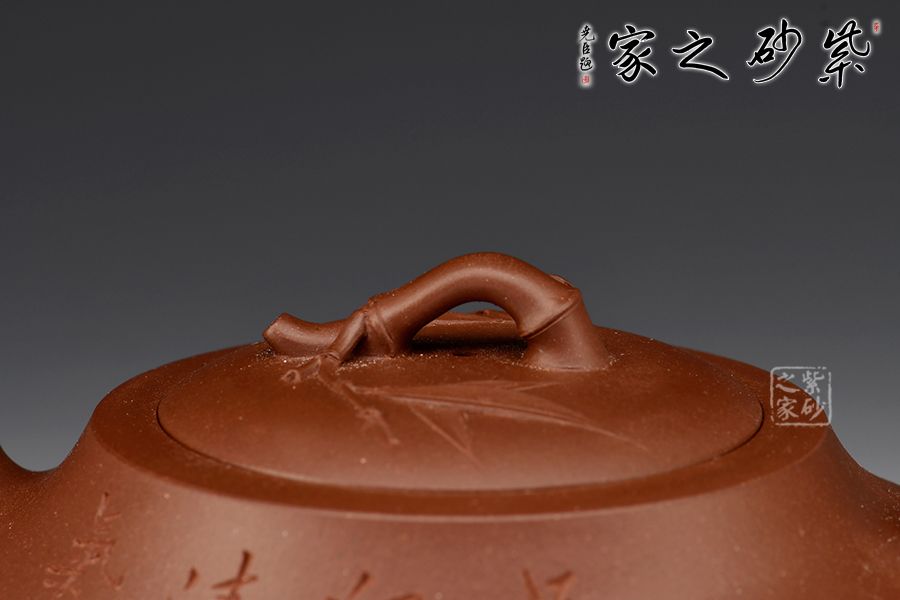 此壺精選原礦底槽青制成,泥色古樸雅致。壺身圓潤,氣度飽滿,嵌蓋微鼓,流、把、鈕宛若竹節(jié)胥出,呈以虬曲之勢。壺蓋枝節(jié)蔓延,貼塑精致細(xì)膩,飄逸靈動,盡顯勃勃生機(jī)。整器制作精良,線面轉(zhuǎn)承自然,內(nèi)蘊(yùn)十足,形制優(yōu)雅,出水爽利,是一把非常實用的殺茶利器。