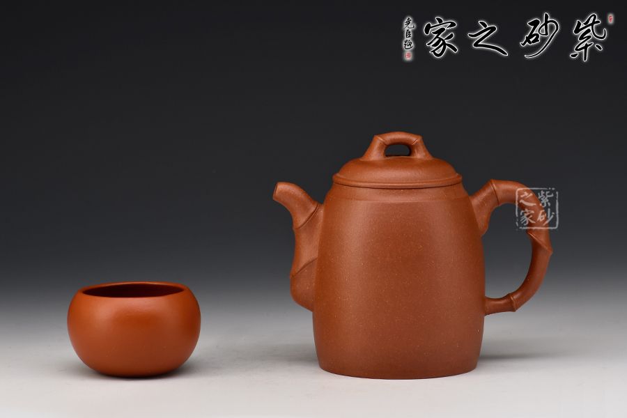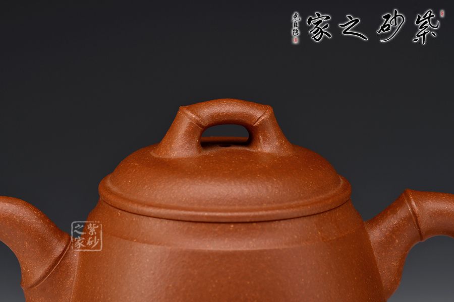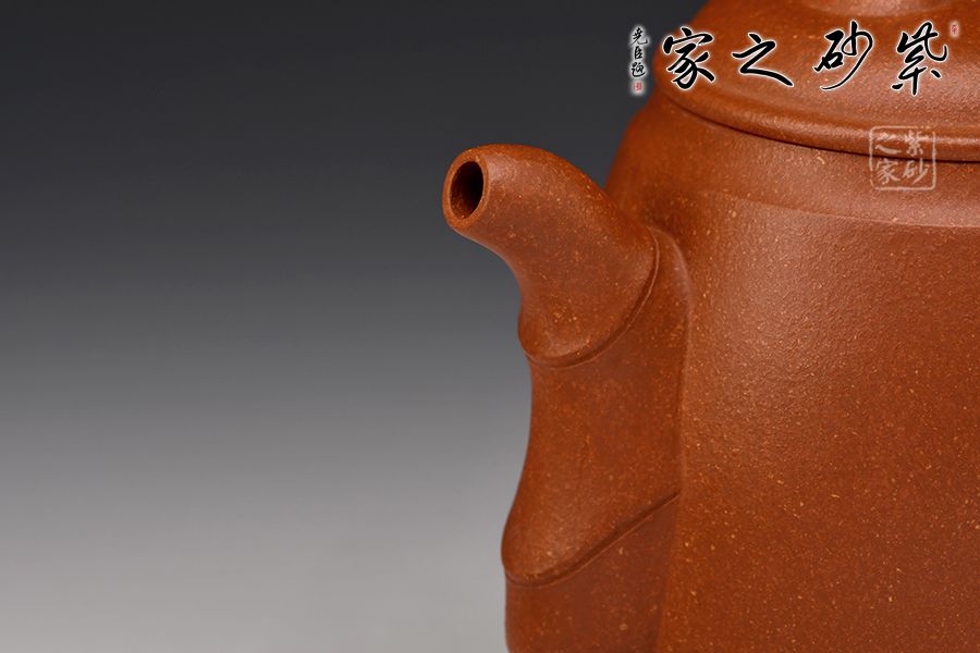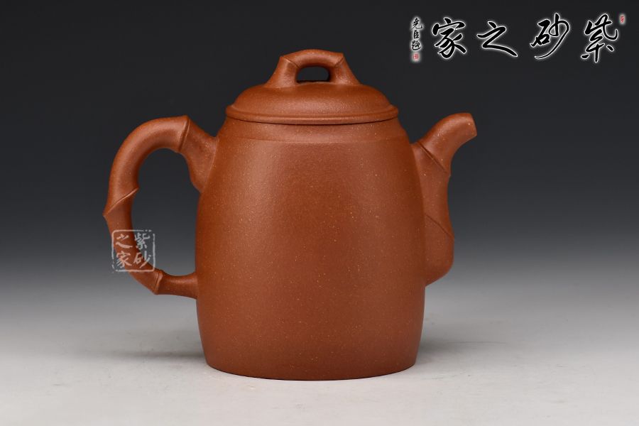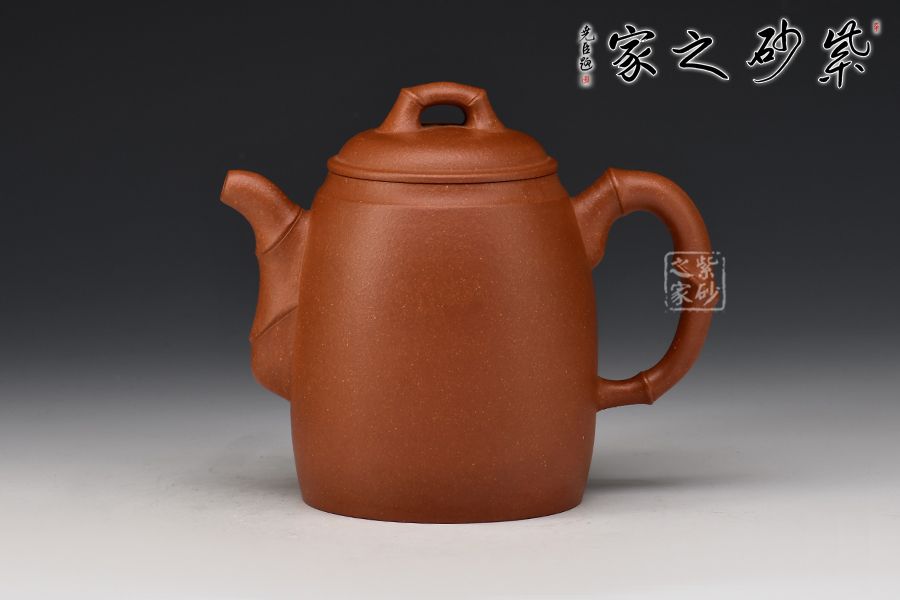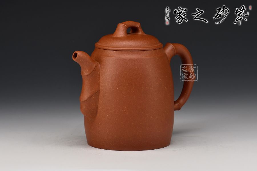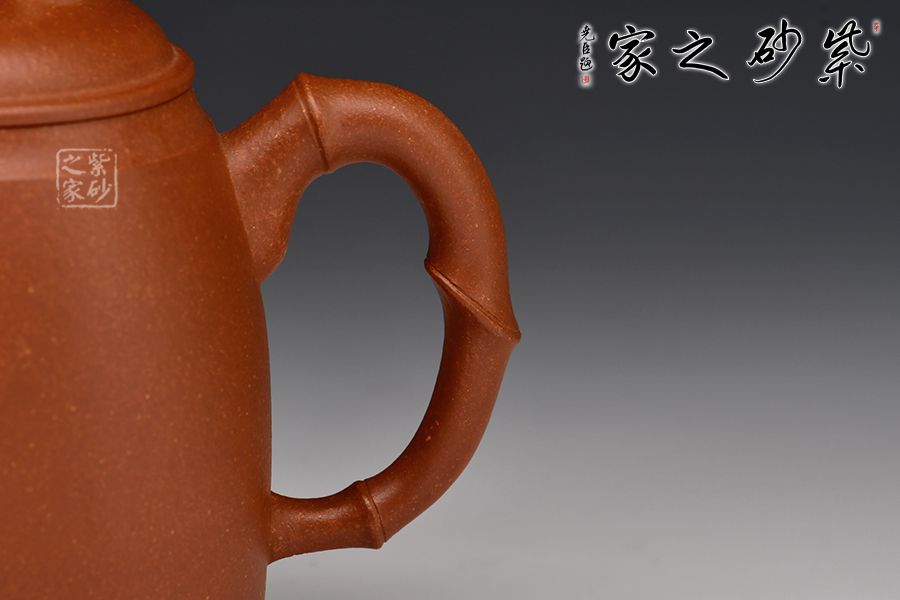 此壺精選紅降坡泥精制而成,色亮明亮,一養(yǎng)即潤。壺身呈圓柱狀,線條流暢。壺嘴壺把竹節(jié)形設(shè)計,突顯出節(jié)節(jié)高升的氣韻。壓蓋式設(shè)計,使得氣密性較好,橋形壺鈕中帶有竹節(jié)設(shè)計,整體搭配的很恰當,十分典雅。