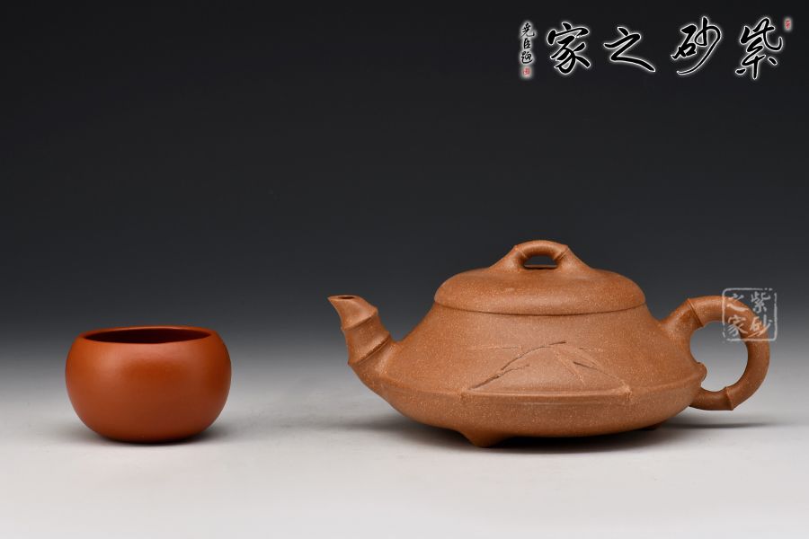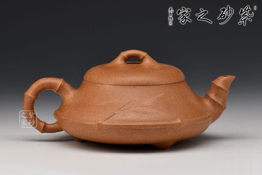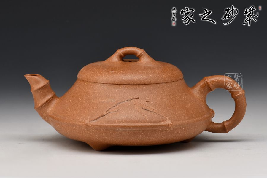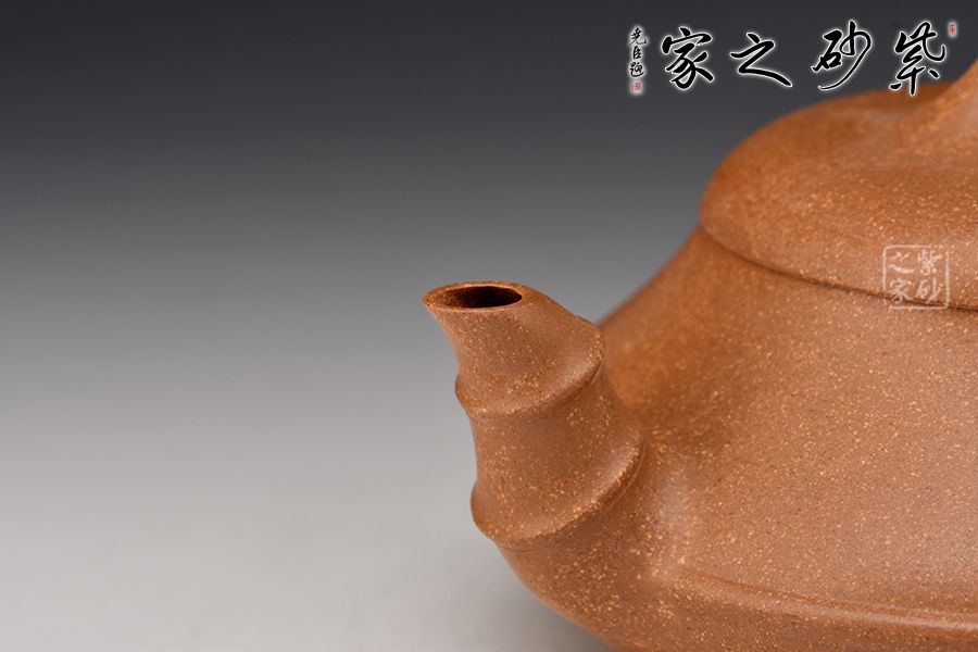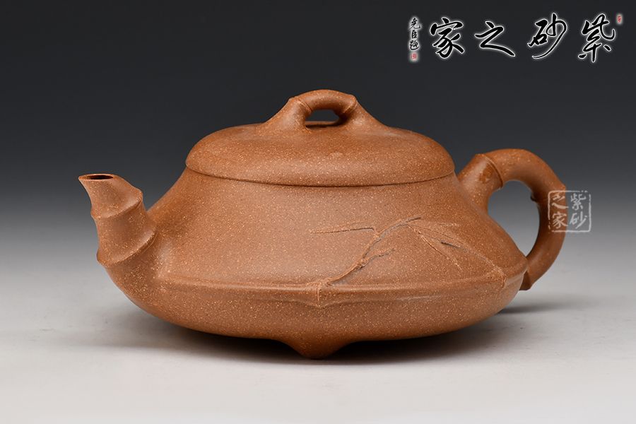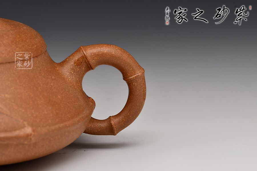 石瓢壺造型簡(jiǎn)練,將傳統(tǒng)竹元素融入其中,敦厚調(diào)和,壺身圓潤(rùn),線條柔和,壺嘴與壺身兩者遙相對(duì)望,相對(duì)稱。這把壺將壺鈕、壺把、壺嘴以竹節(jié)裝飾,另有一枝嫩竹從壺把上伸出,一種造型的視覺動(dòng)感和立體美感呈現(xiàn)于眼前,別出心裁,匠心獨(dú)具。