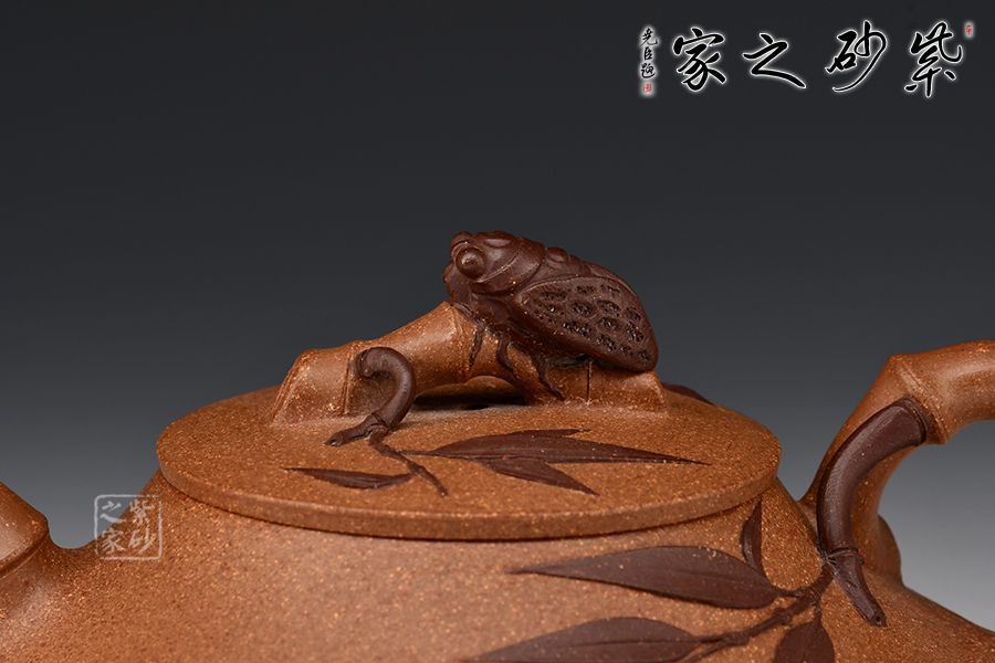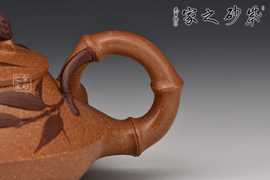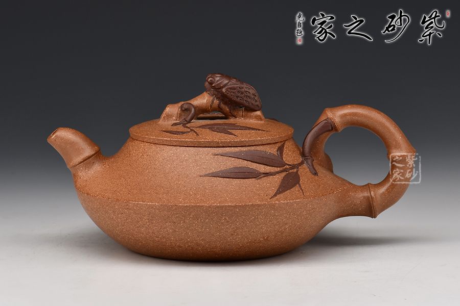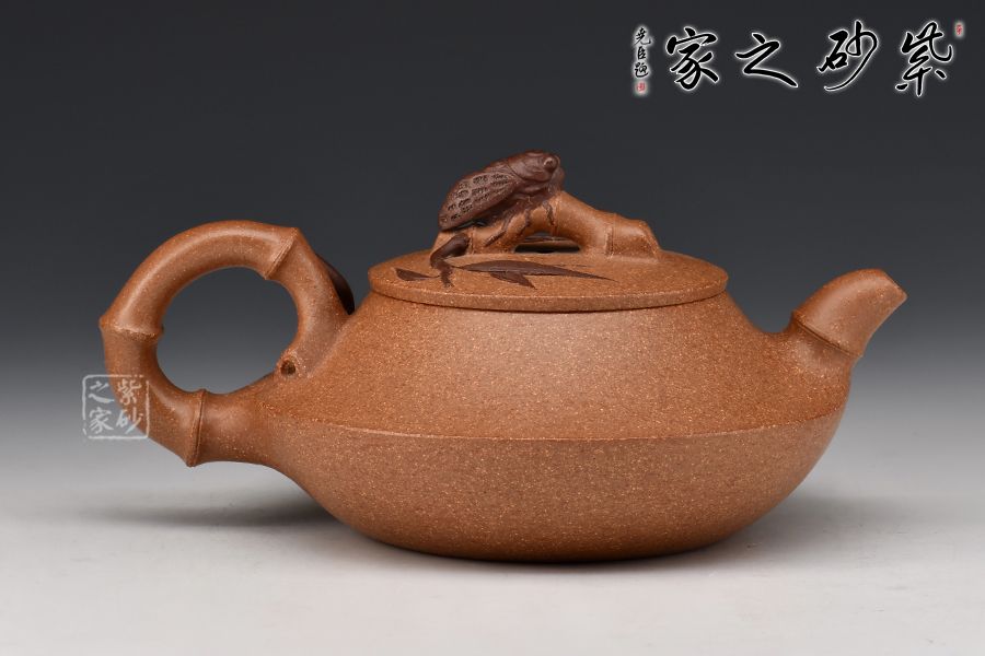 泥性:感甜嫩綿密,質(zhì)堅(jiān)而溫潤,呈近田黃色調(diào),為江蘇宜興趙莊山系朱泥礦~黃石黃之共生礦,經(jīng)挑揀練製而成,因含鐵量只達(dá)6%左右,致陶之后呈“金田黃色”。