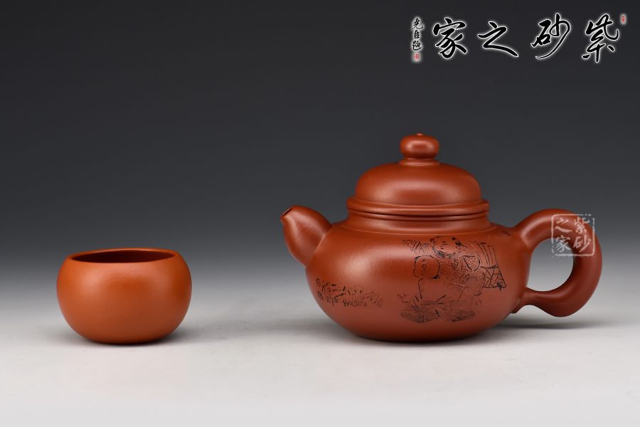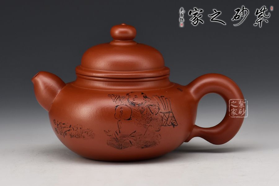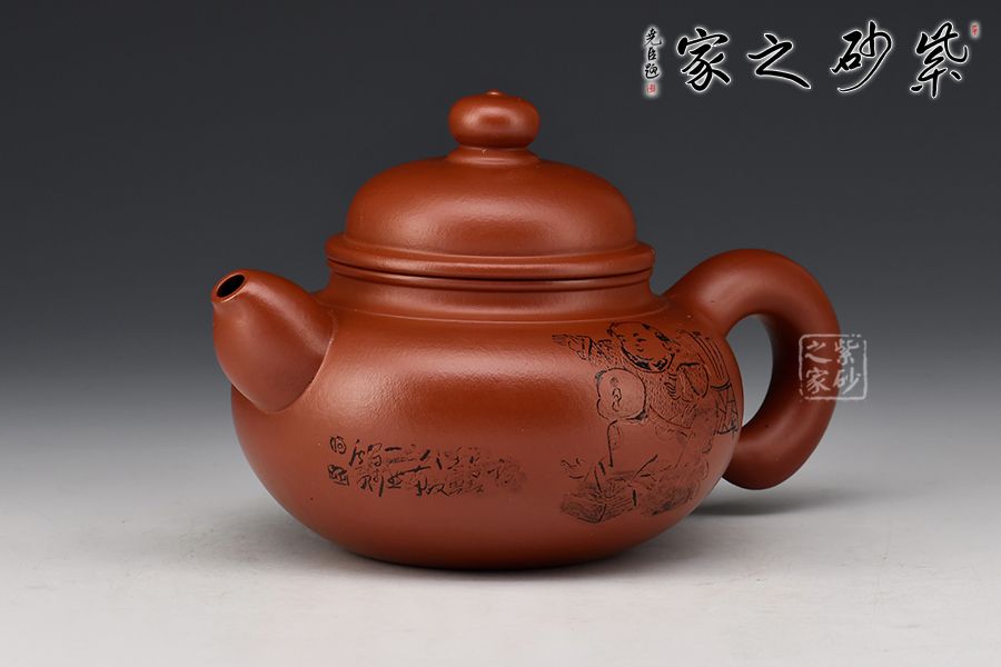 特點:質(zhì)感綿密、緊實細緻,持之扎實沉重、紅潤豔麗,泥中極品,無以倫比;泥胚含少許原礦顆粒,沖淋熱水后色變極大,呈紅中帶紫,養(yǎng)壺易現(xiàn)“包漿”之美。