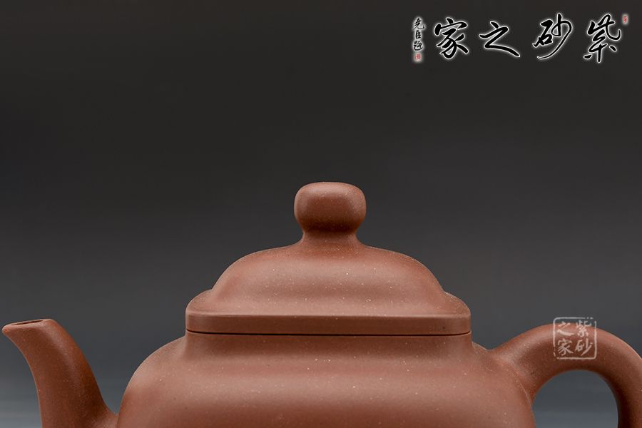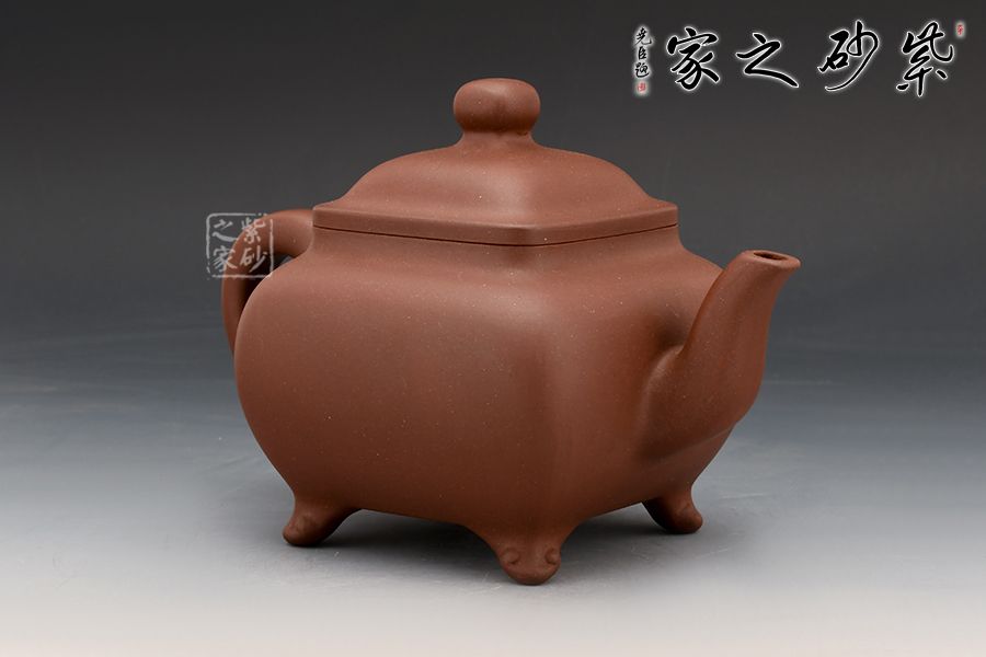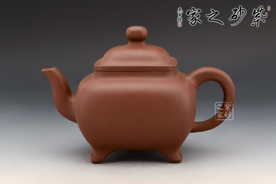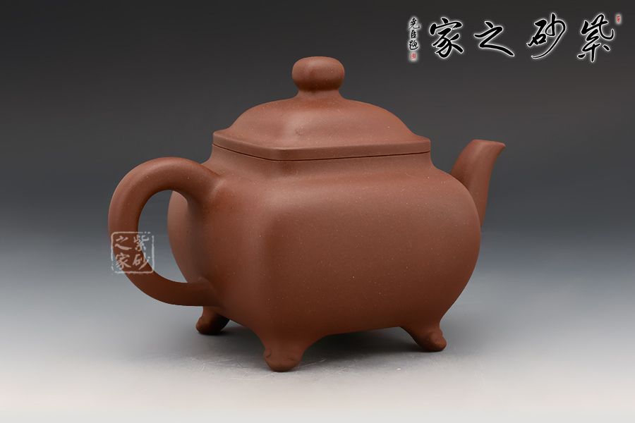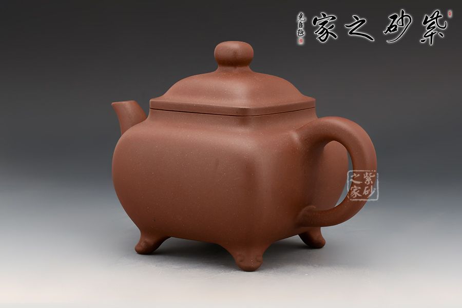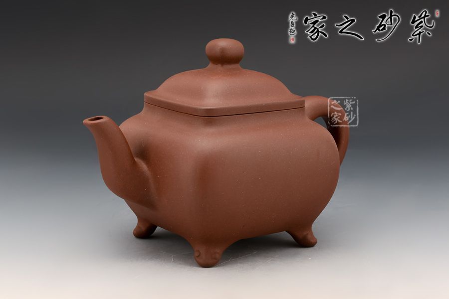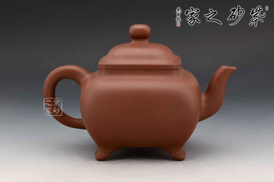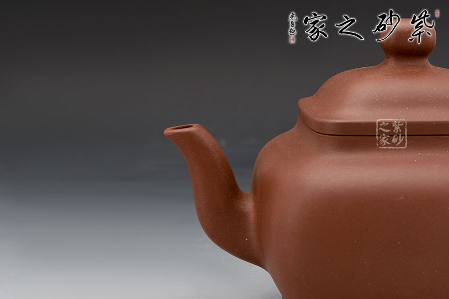 壺身采用中國(guó)古代鼎的造型加以改良,通體火紅,似爐中焰火,經(jīng)久不息。壺口四方,大而不闊,鈕蓋渾圓光亮如珠,三彎壺嘴,氣韻流暢直至底足,頗有君子一言九鼎之氣度。讓人觀而生威,玩而生趣,愛不釋手。