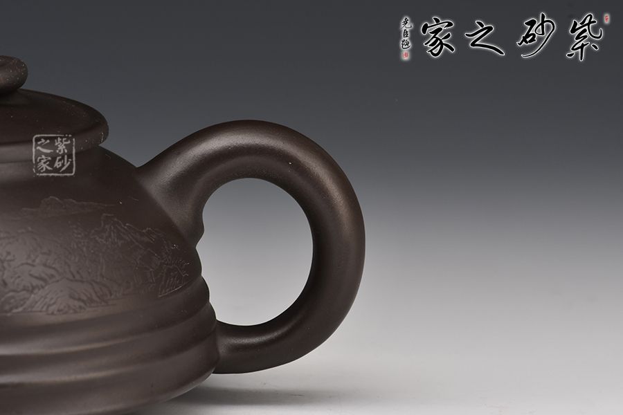 此壺名為“漢韻單圈”,在漢韻壺形的基礎(chǔ)上加入自己的創(chuàng)新。壺之造型流暢,各部比例協(xié)調(diào),銜接自如,有一氣呵成之勢,極具審美特性與實用功能。壺身線條修飾更顯銜接流暢、層次分明。壺嘴頗有特色,基底增大,憨厚自如,出水迅猛;壺把與彎流呈應(yīng)和之勢,氣勢優(yōu)美。壺鈕圓環(huán)裝飾,乃點睛之筆。整壺大氣、質(zhì)樸,有神韻、有靈氣,賞用藏皆宜!