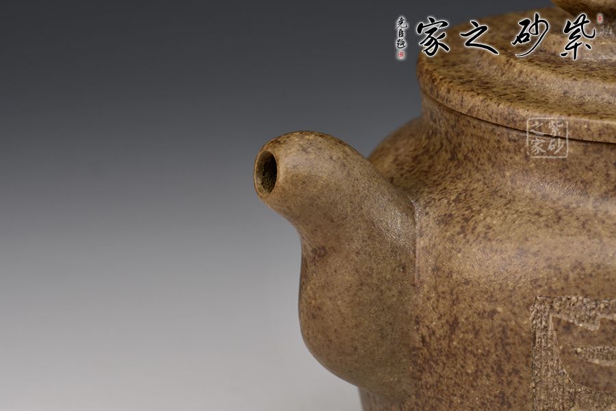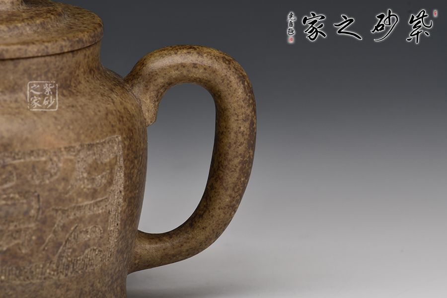 壺身過渡平滑洗練,線條美感十足,金鐘的造型自然且逼真。壓蓋設(shè)計(jì),嚴(yán)絲合縫。三彎壺嘴圓潤可愛,線條柔和而生動(dòng)。壺把圓潤大方,簡單生動(dòng)。此壺造型精美而且大方,意韻悠遠(yuǎn)讓人回味無窮。