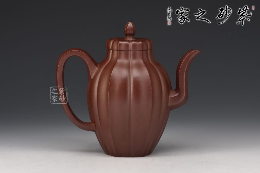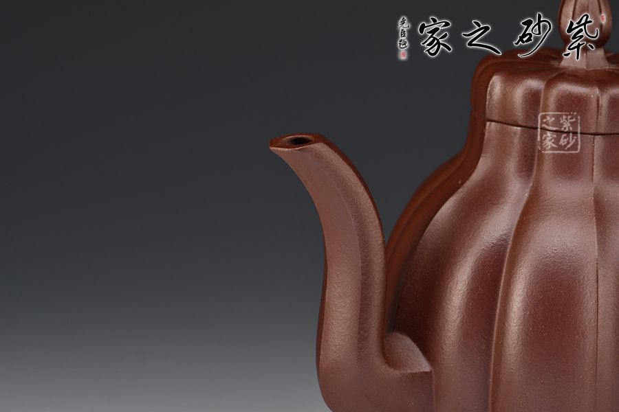 此款筋紋高秋水,壺身挑高,亭亭玉立,氣韻充沛,鈕、蓋、身之形和諧呼應(yīng),線條自然流暢,仿若一氣呵成。流、把自肩部胥出,纖巧秀美,婀娜勻麗。整器簡約樸雅,工藝精良,內(nèi)蘊十足,值得把玩。
