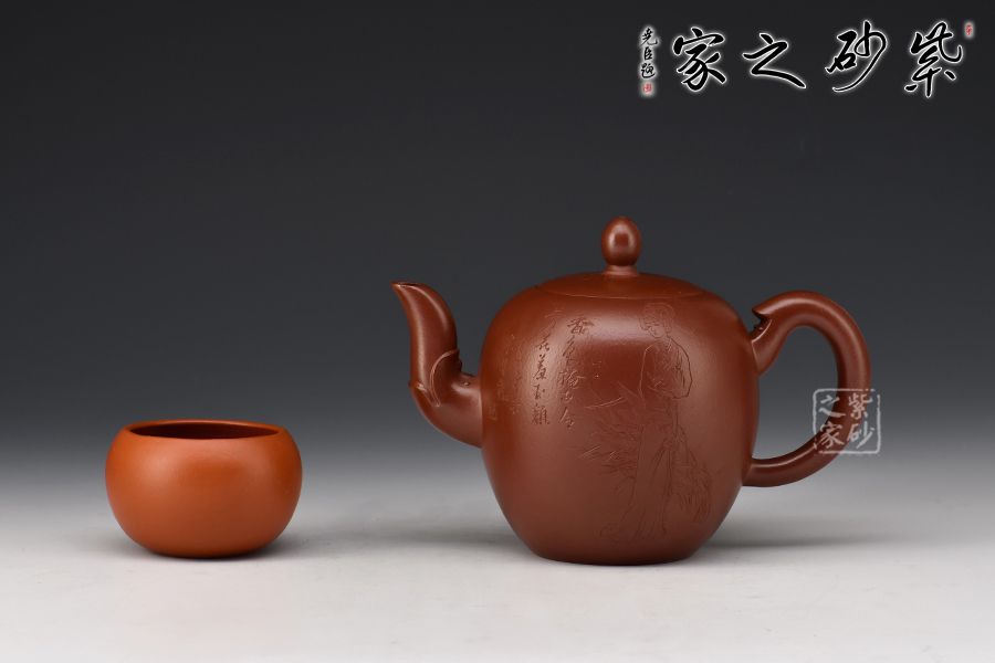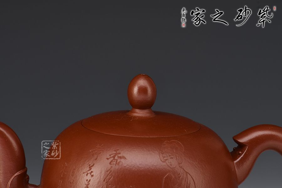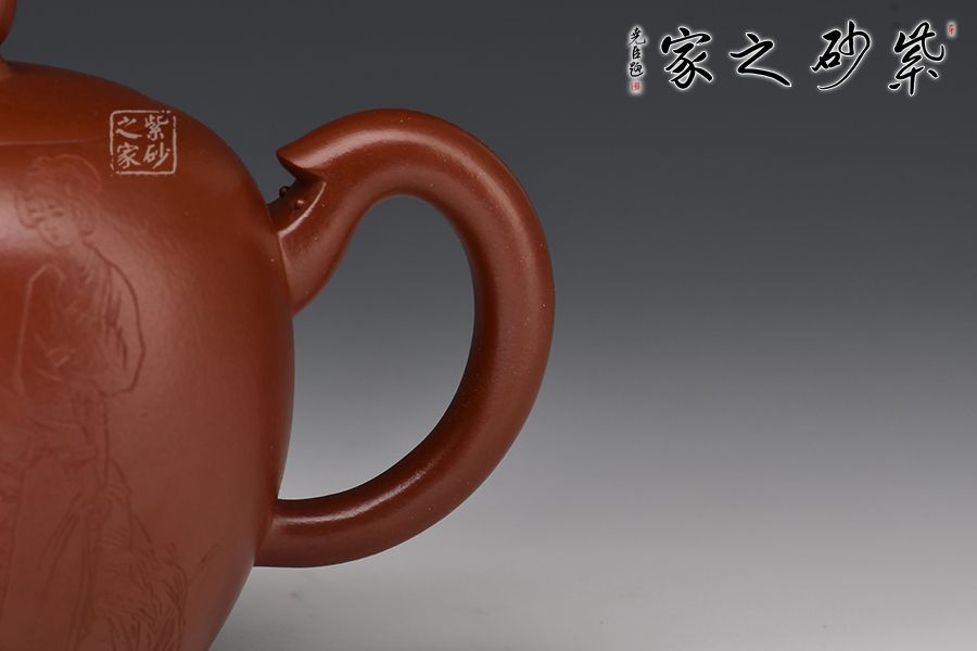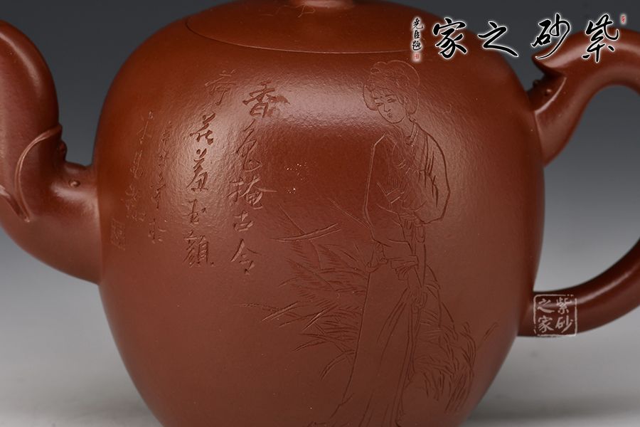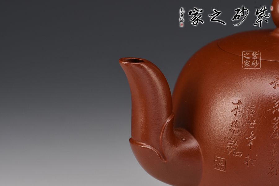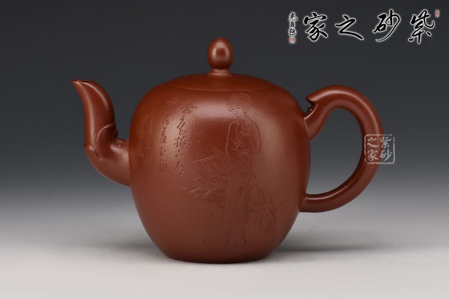 此美人肩壺為作者選用紫朱泥,全手工精制而成。豐滿勻稱的壺肩,向下漸收,整體圓融飽滿,巧而精致。珠鈕亭亭玉立,三彎流優(yōu)雅胥出,彎把纖巧秀美,盡顯婀娜多姿之美態(tài)。整壺氣韻飽滿,好料精工,手感舒適,280cc容量,實用性佳。