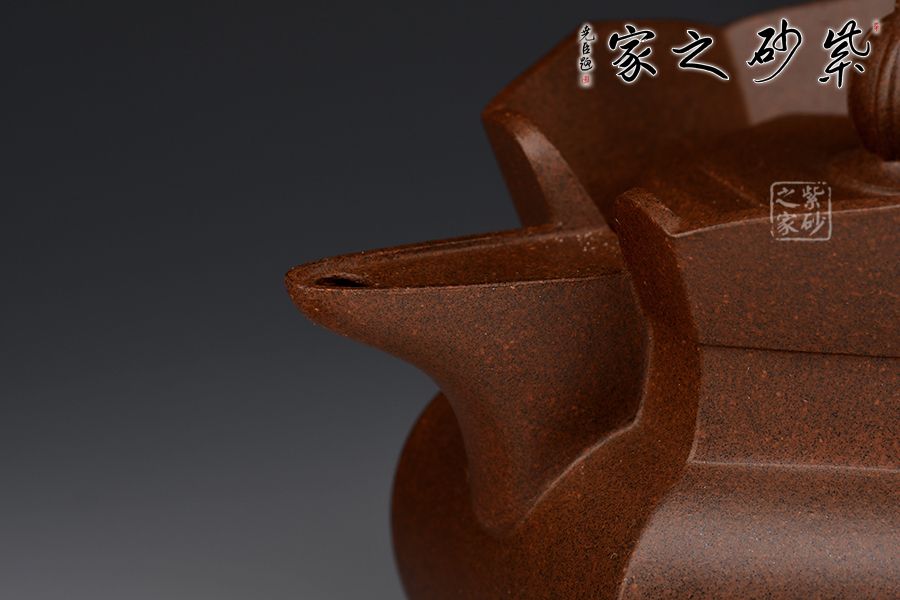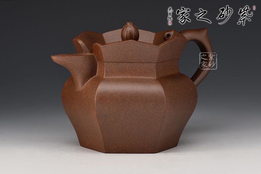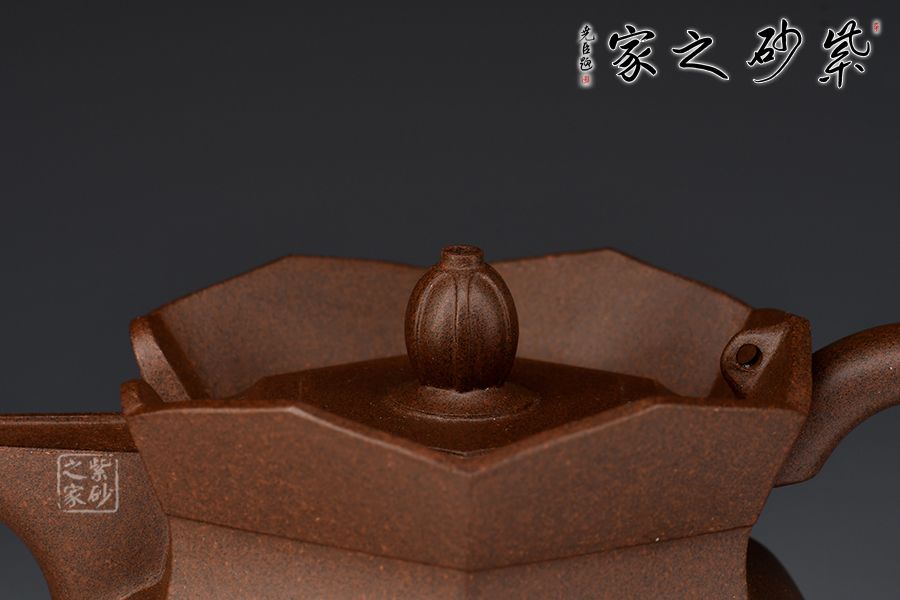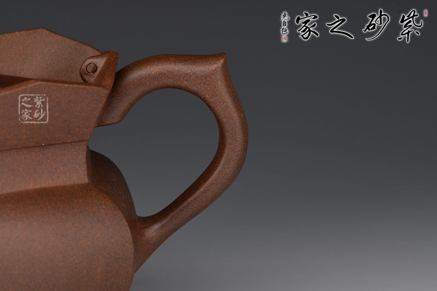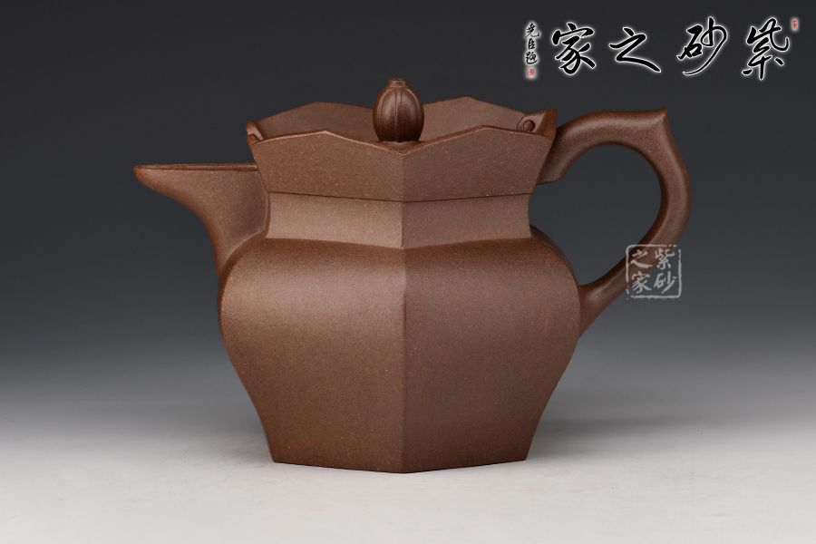 此款僧帽壺為六方拼接而成,成型難度較大,壺身上下線條變化豐富、比例恰當(dāng),特別是壺頸肩部用收緊的云肩線,使壺的節(jié)奏感更加強(qiáng)力。蓮花瓣的比例及暢開的角度,有一種蓮花正在開放的態(tài)勢。壺嘴壺把的大小粗細(xì)與整體比例協(xié)調(diào)得體,壺蓋面層次有序加高,正托起了花頂摘手,使其更顯端莊、內(nèi)斂,制作精致,使人愛不釋手。