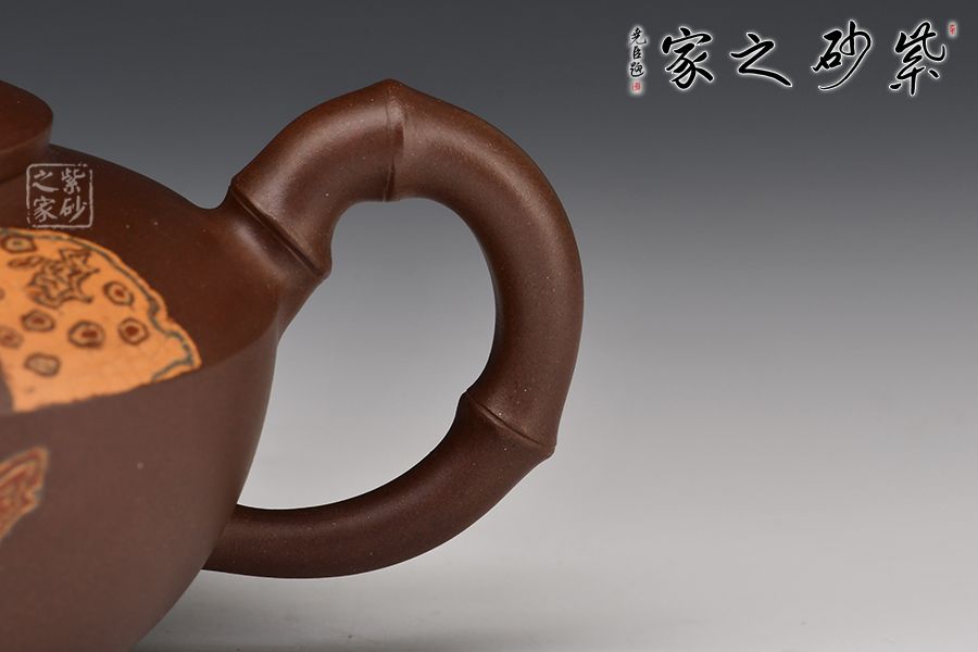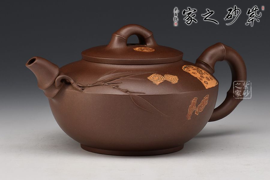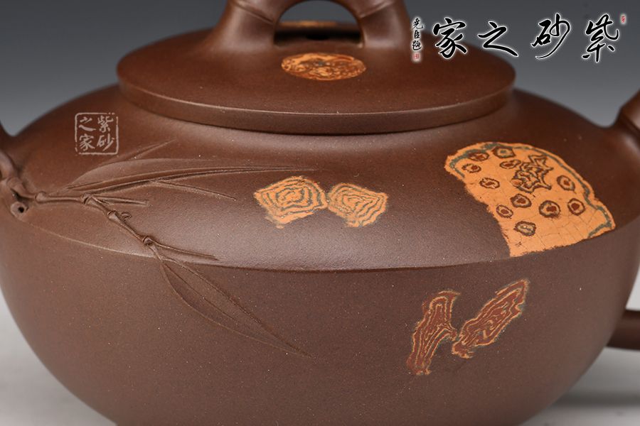 壺身形似大碗,飽滿圓潤(rùn)。流把紐皆采用竹節(jié)造型,壺身亦點(diǎn)綴竹葉,試想捧壺在手如此遙望,豈不是一件樂(lè)事?品茗收藏皆宜,喜歡的朋友千萬(wàn)不要錯(cuò)過(guò)!