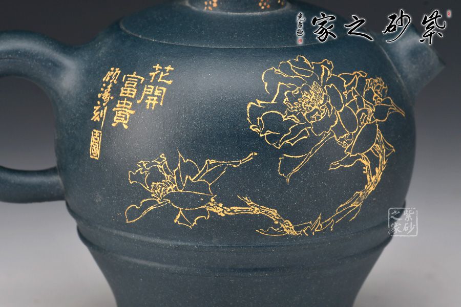 壺名華錦,寓意繁華似錦,富貴如意?;ㄆ吭煨蛪厣恚ねび窳?,氣質(zhì)不俗。優(yōu)雅的線條自上而下流淌,勾勒出靈動(dòng)曼妙的曲線,充滿一種東方女性的柔美、自信與頑強(qiáng),壺腹雙線束腰,使整器比例更趨完美、自律,流、把、鈕造型獨(dú)特,富有創(chuàng)意,與壺身的銜接更趨于雅致,秀麗而不失大度,古樸而又別具一格。壺兩面由顧紹培大師書刻“花開富貴,華錦含香”,寥寥數(shù)字,配上花開艷麗的牡丹,抒發(fā)了對(duì)這如愿盛世的一種感恩與贊美,祝山河永固,盛世繁華如錦,生活美好幸福!