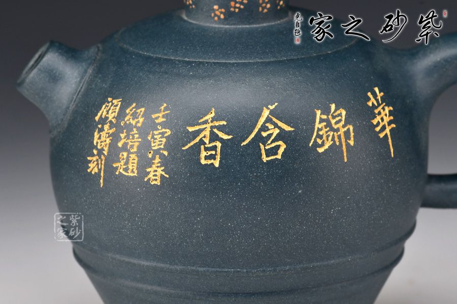 此華錦壺為巾幗紫砂領(lǐng)軍人、顧紹培嫡女顧勤制,國(guó)大師顧紹培書題,正高工顧濤裝飾,此壺最大的特點(diǎn)是天圓地方,壺身像一個(gè)小蠻腰,壺嘴與壺把相對(duì)中性,口蓋一體。此壺為顧勤老師新品,三大師合作,升值潛力極大!