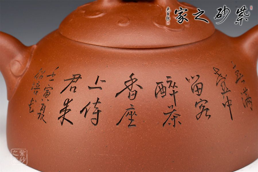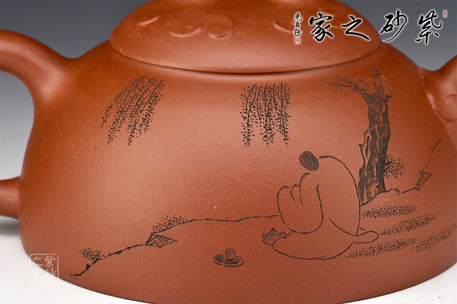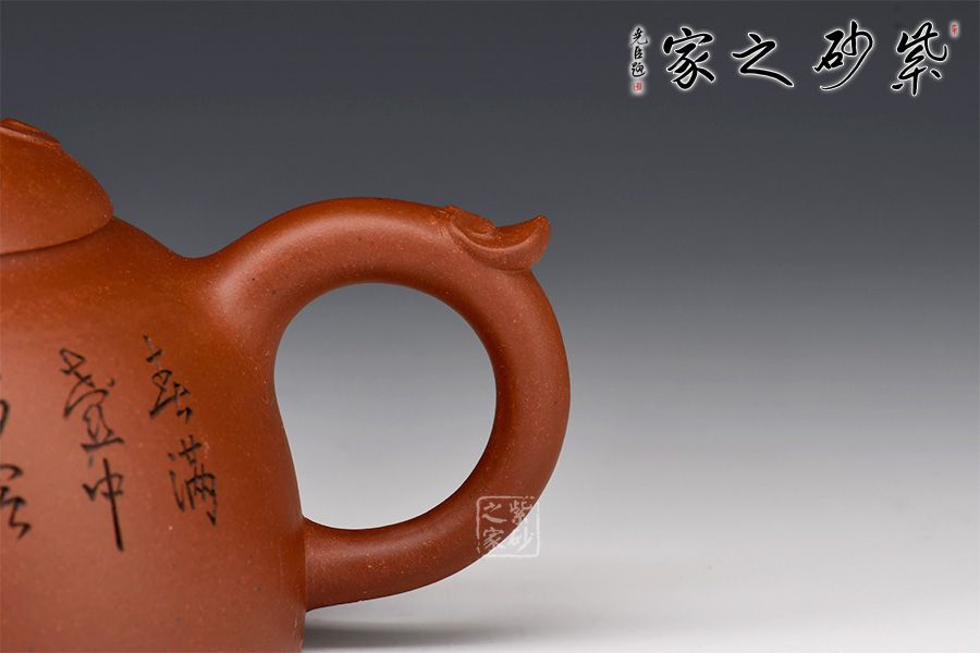 許俊濤,國家級工藝美術(shù)師,得到顧紹培和顧勤父女兩代紫砂大師的長期指導(dǎo)和悉心栽培,是顧氏門下最具發(fā)展?jié)摿Φ淖仙八囆g(shù)家。此壺壺身為半球,壓蓋與壺口嚴(yán)絲合縫,壺口較大,便于投茶,一彎嘴胥出,橋型鈕增添了幾分靈動,壺蓋與壺嘴、壺把以如意紋裝飾,預(yù)計吉祥如意。