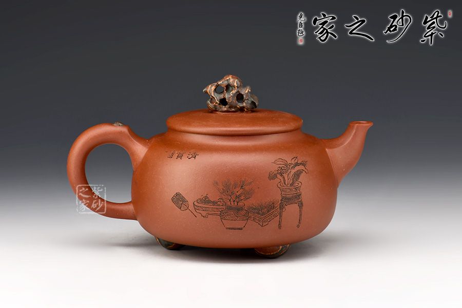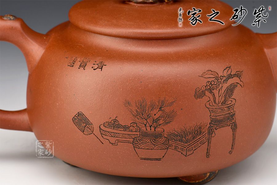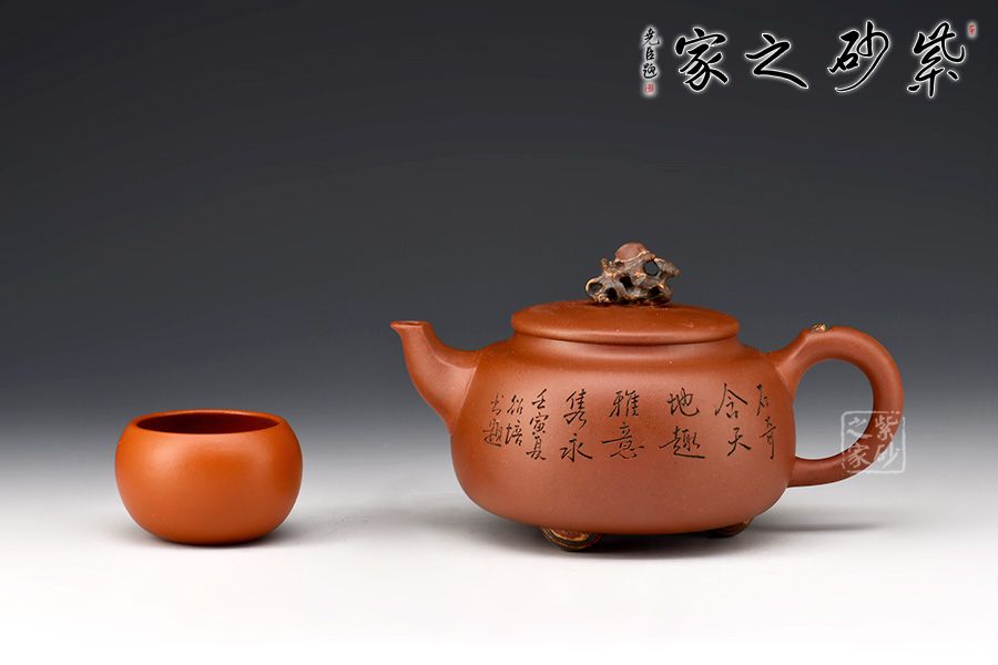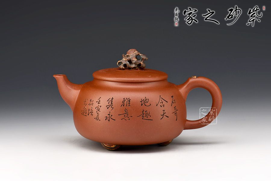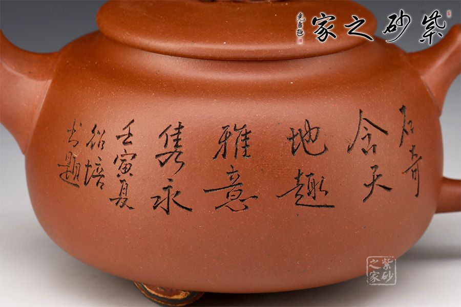 此壺由顧氏門下最具發(fā)展?jié)摿Φ淖仙八囆g(shù)家、顧氏陶藝第六代傳人許俊濤制作,壺身飽滿,圈把抓握舒適,彎流上揚(yáng),壓蓋平整,假山樣壺鈕有畫龍點(diǎn)睛之感。壺身由國大師顧紹培書題:石奇含天地,趣雅意雋永!志趣高雅,此壺?zé)o論是自用還是送人皆為上品!