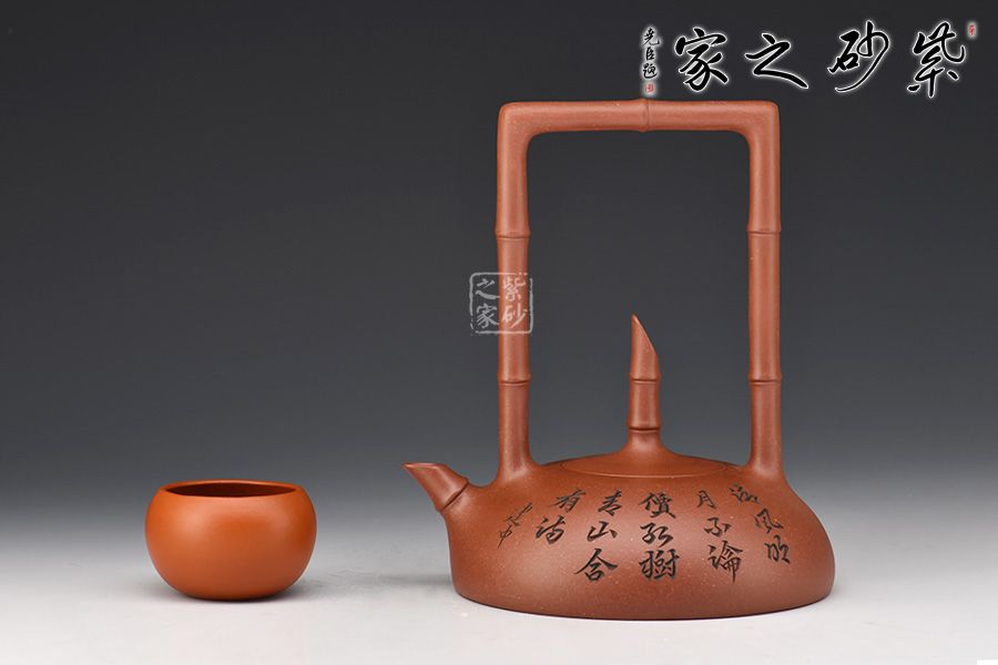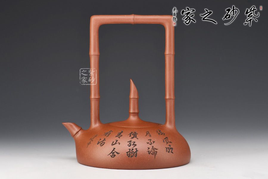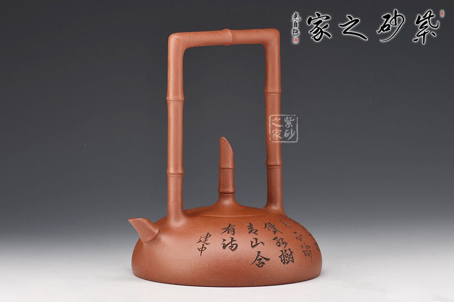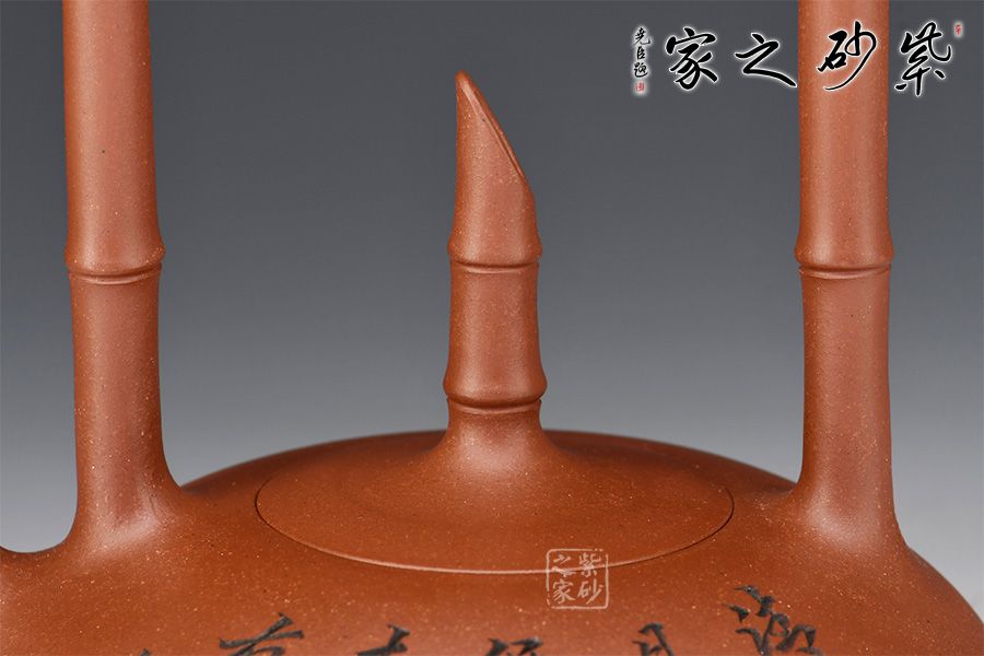 此作在傳統(tǒng)半月壺之上有創(chuàng)新,做成提梁,且以竹入壺。